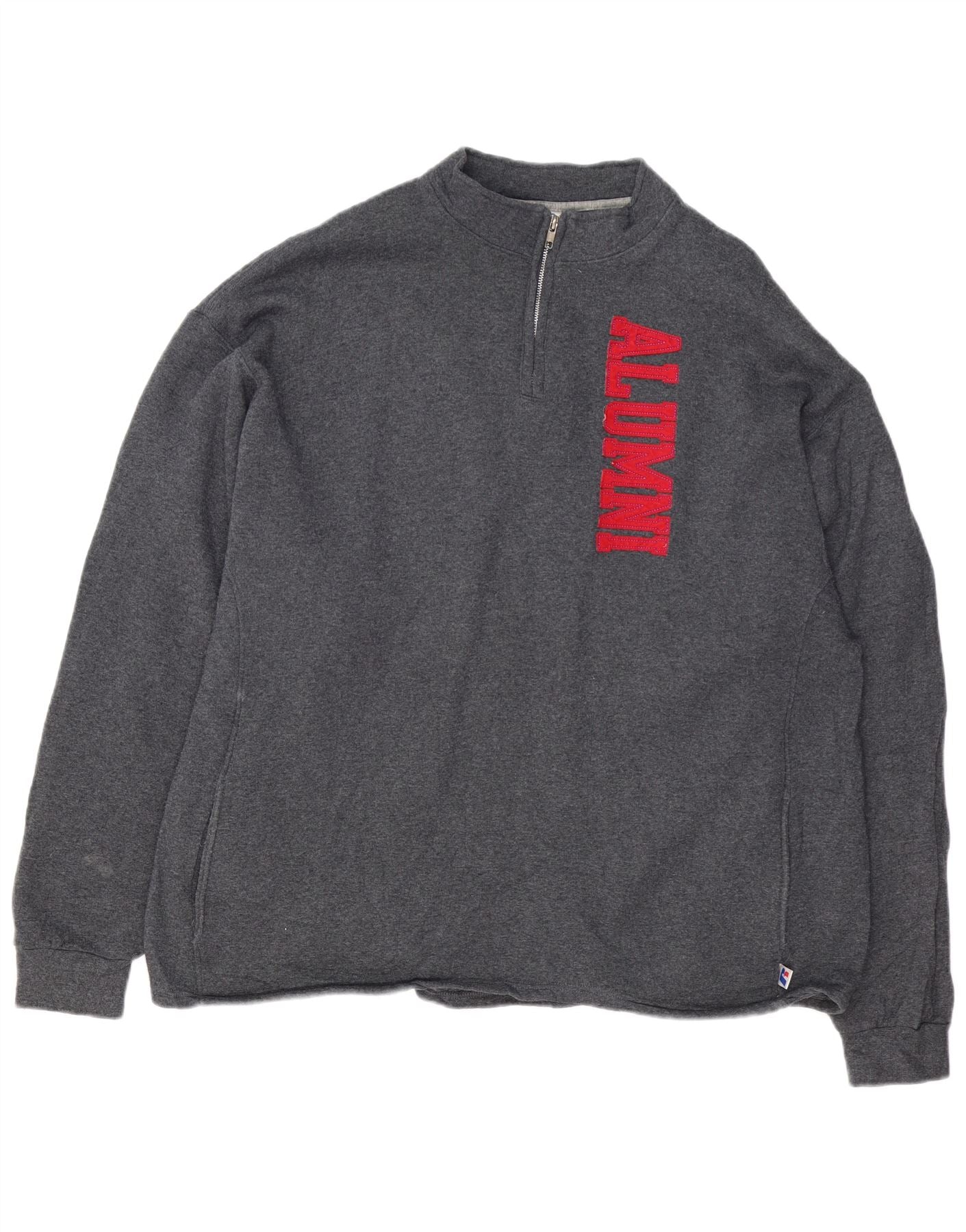 RUSSELL ATHLETIC Mens Graphic Zip Neck Sweatshirt Jumper 2XL Grey Cotton