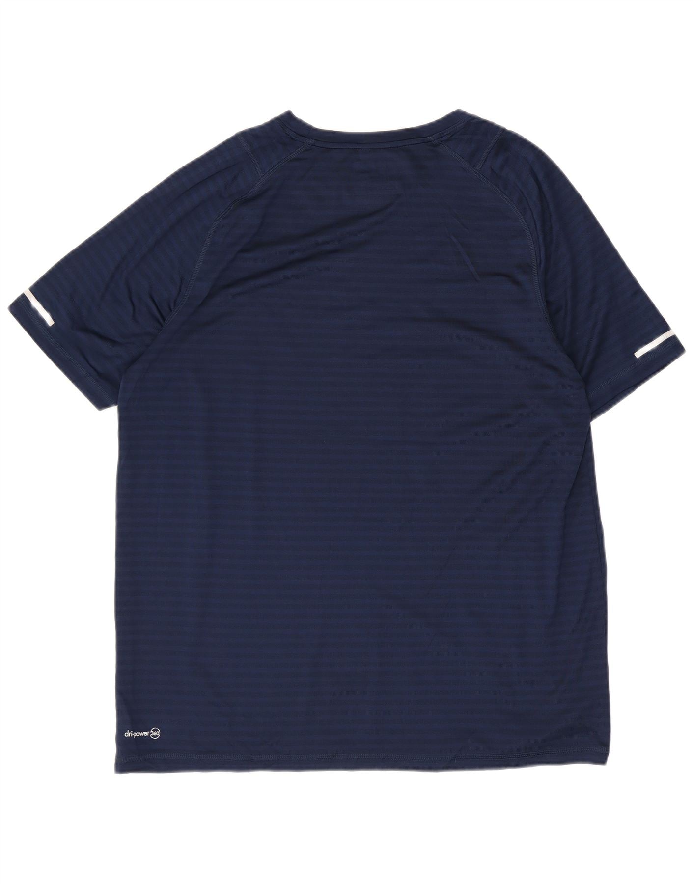 Russell Athletic Mens T-Shirt Top Large Navy Blue Striped Polyester