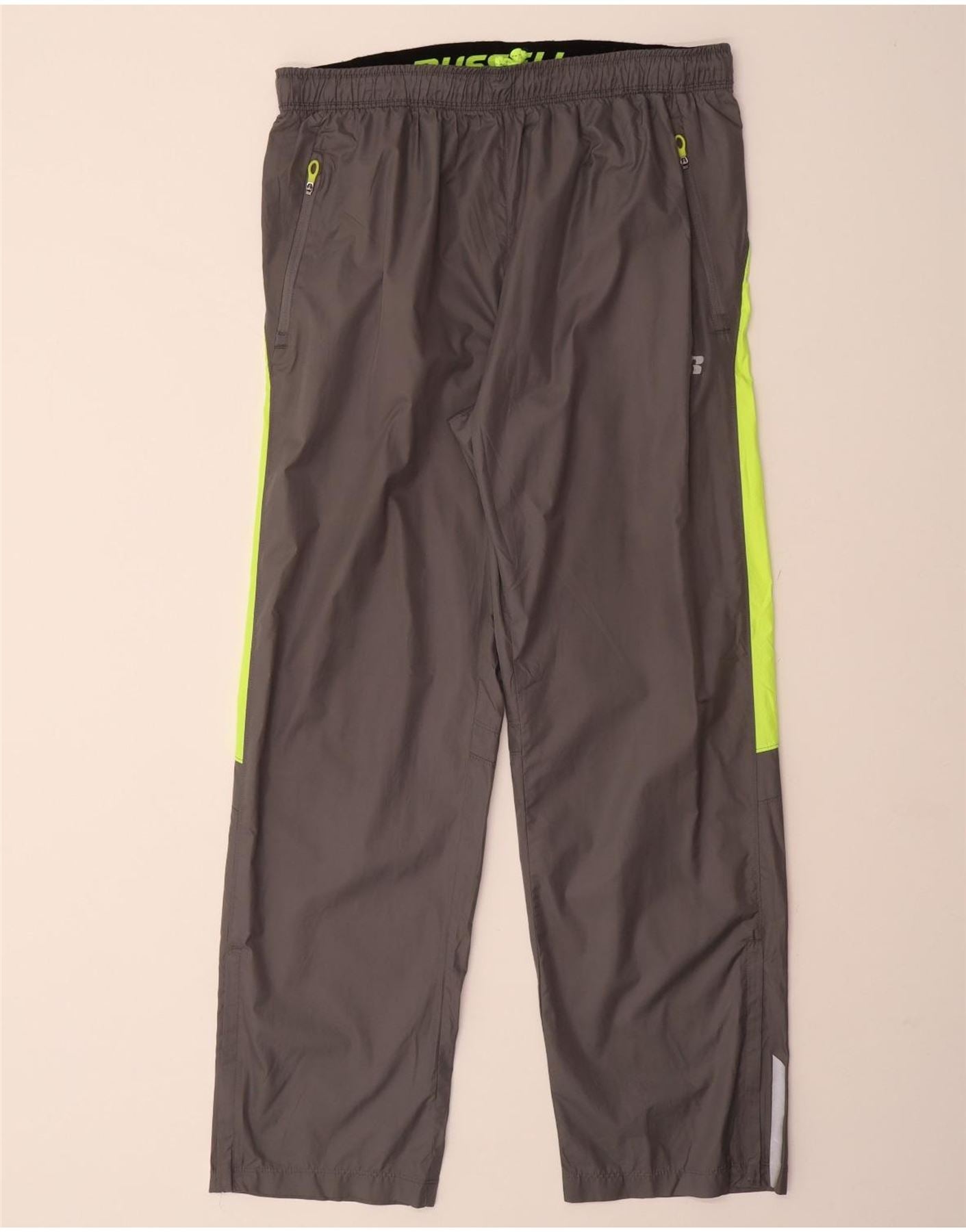 RUSSELL ATHLETIC Mens Tracksuit Trousers Medium Grey Colourblock Polyester