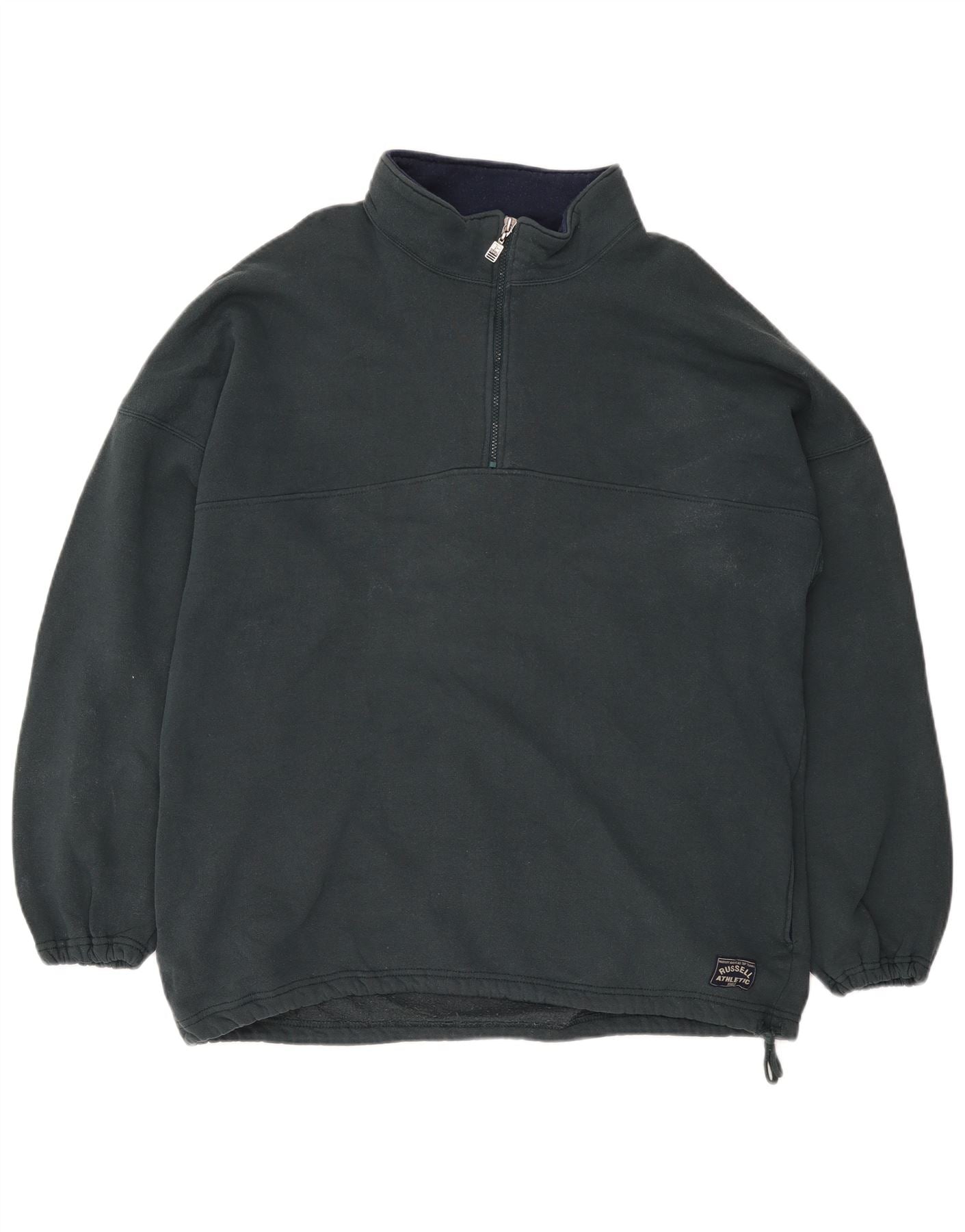 RUSSELL ATHLETIC Mens Zip Neck Sweatshirt Jumper 2XL Blue Cotton