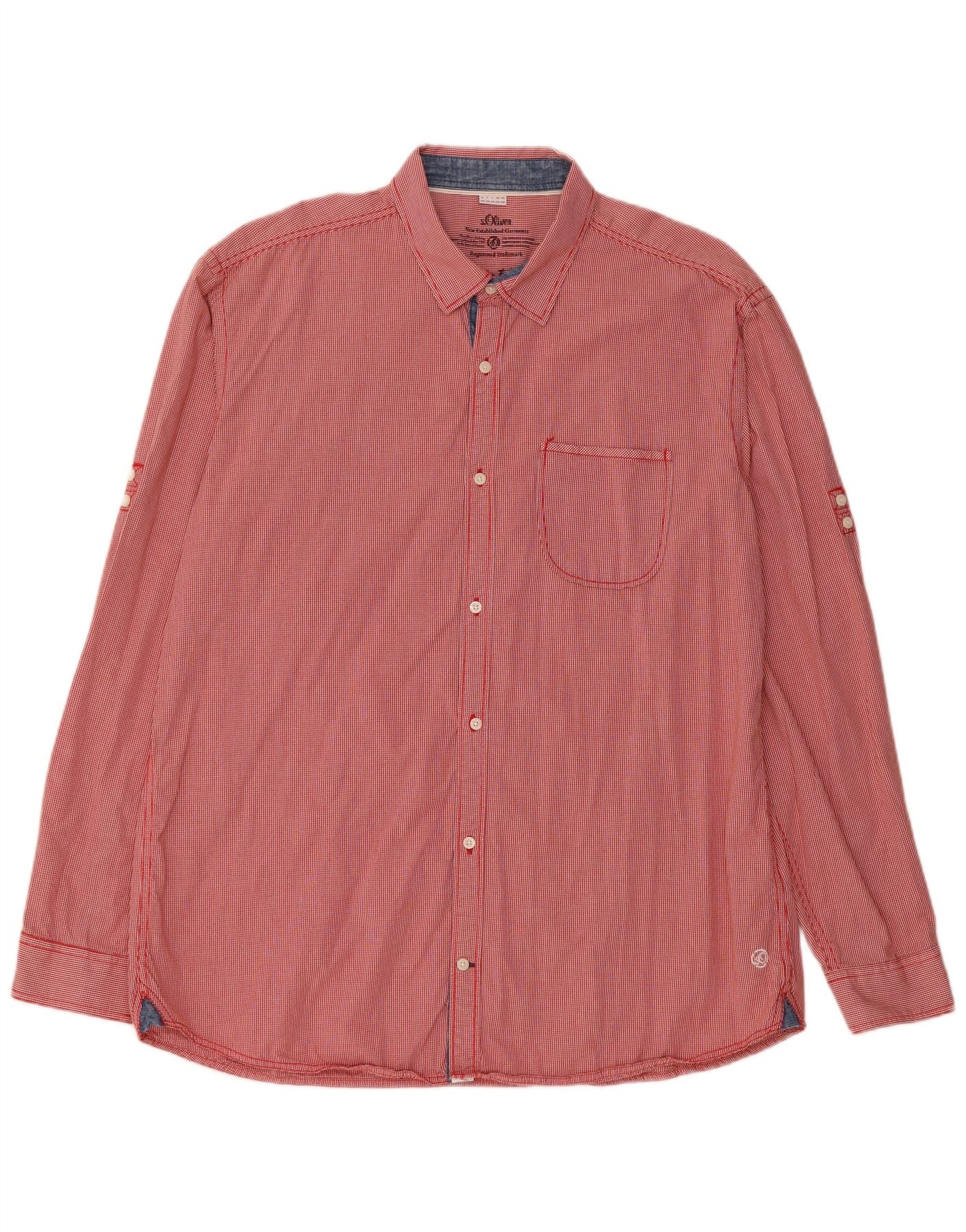 S.Oliver Mens Slim Fit Shirt 2XL Red Gingham Cotton