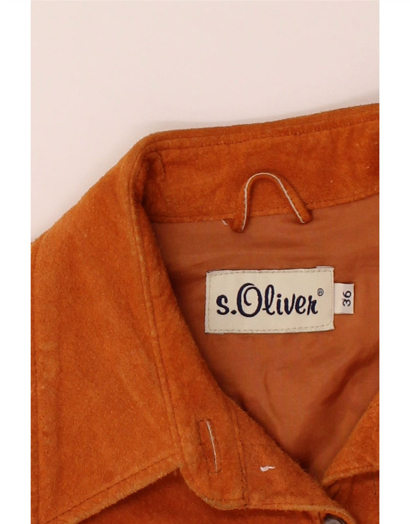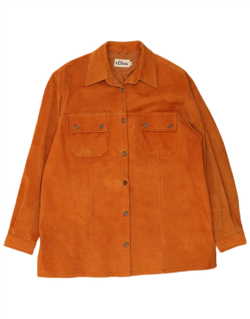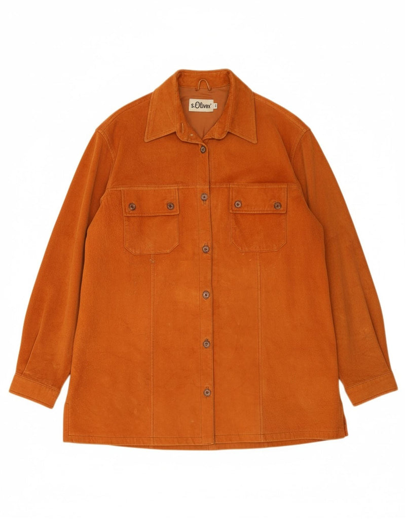 S.OLIVER Womens Oversized Suede Overshirt Shirt EU 36 Small Brown Leather