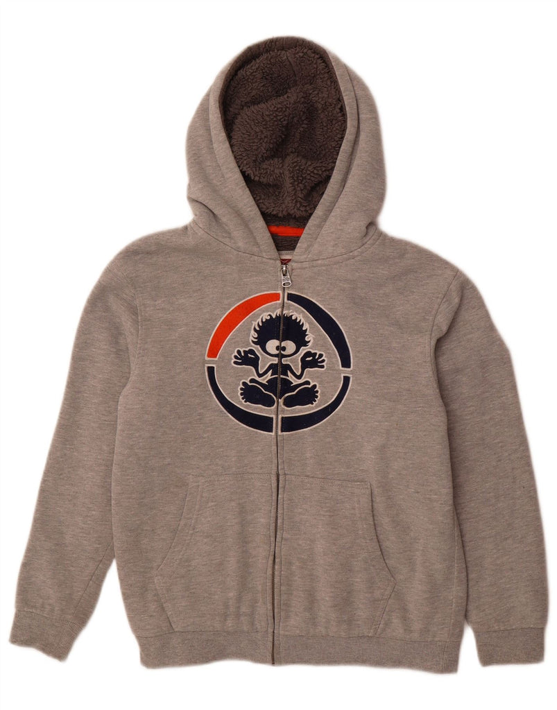 SALTROCK Boys Graphic Sherpa Zip Hoodie Sweater 11-12 Years Grey Cartoon