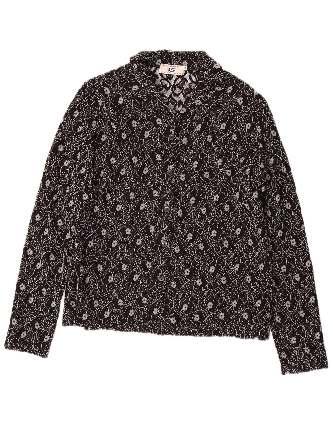 SARA GLENZER Womens Shirt Blouse IT 44 Medium Black Floral