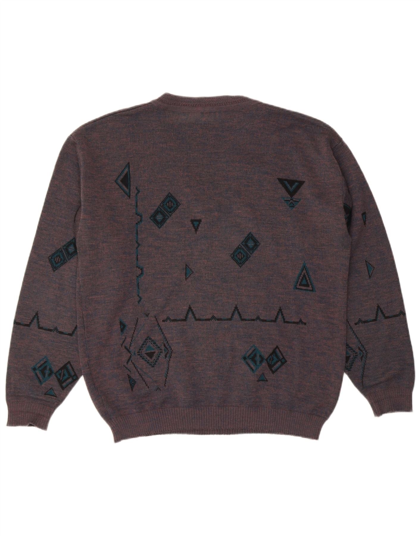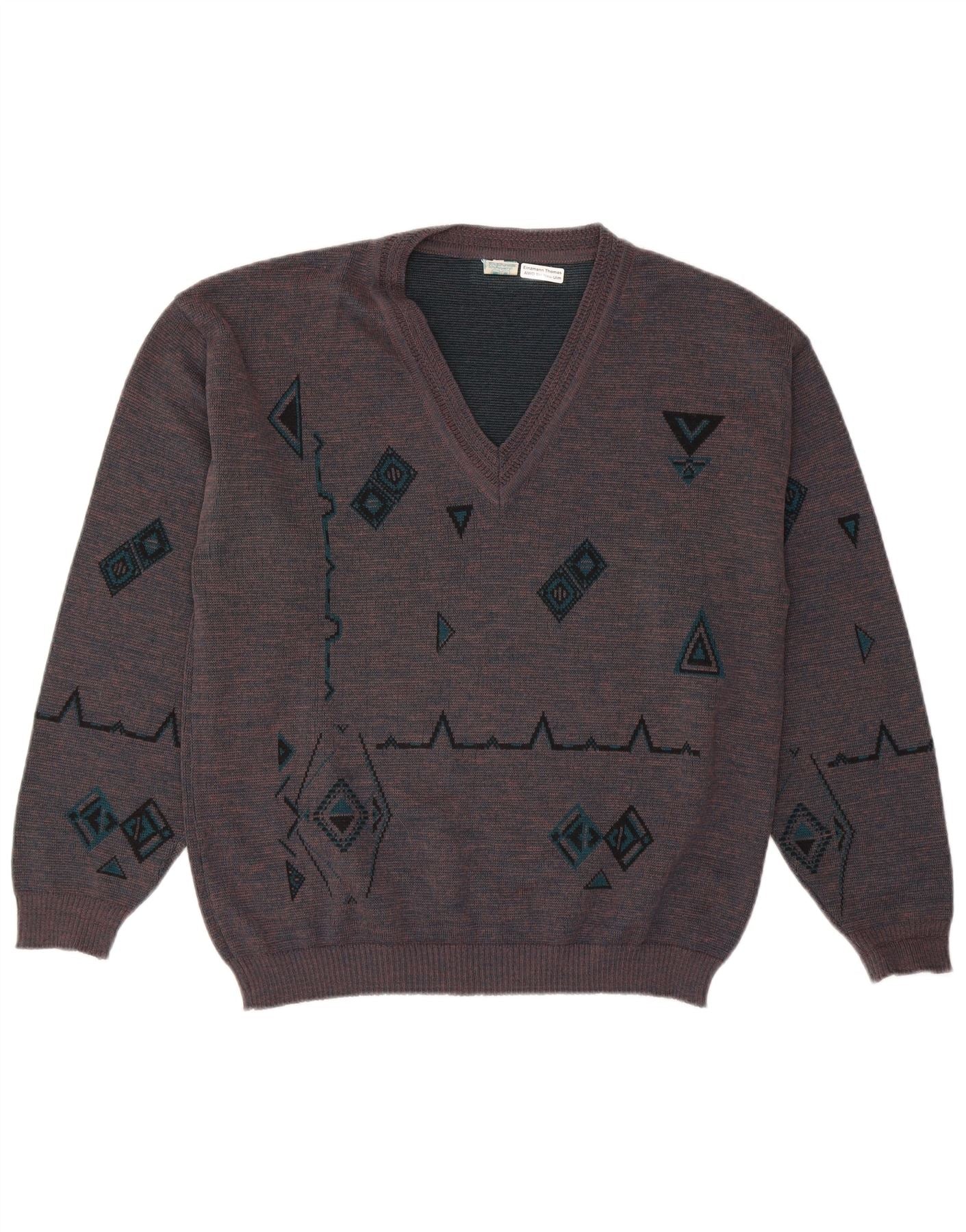 SCHOELLER Mens Arkansas V-Neck Jumper Sweater IT 52 Large Purple Geometric