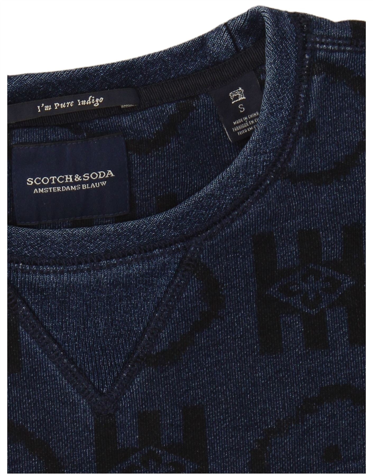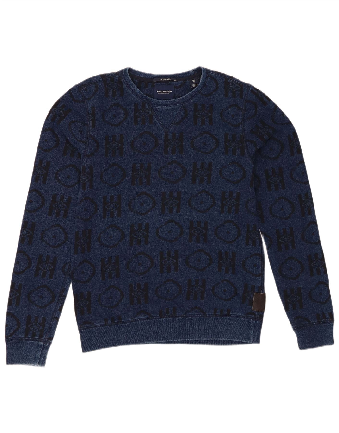 SCOTCH & SODA Mens Indigo Sweatshirt Jumper Small Navy Blue Geometric