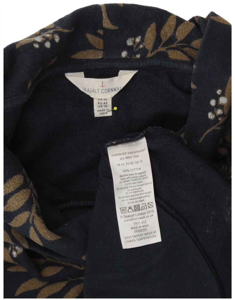 SEASALT Womens 3/4 Sleeve Jumper Dress UK 14 Large Navy Blue Floral