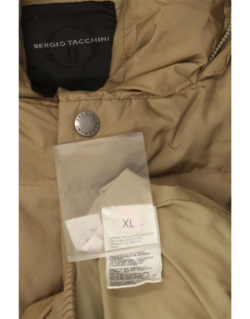 SERGIO TACCHINI Mens Hooded Padded Jacket UK 42 XL Beige Polyester