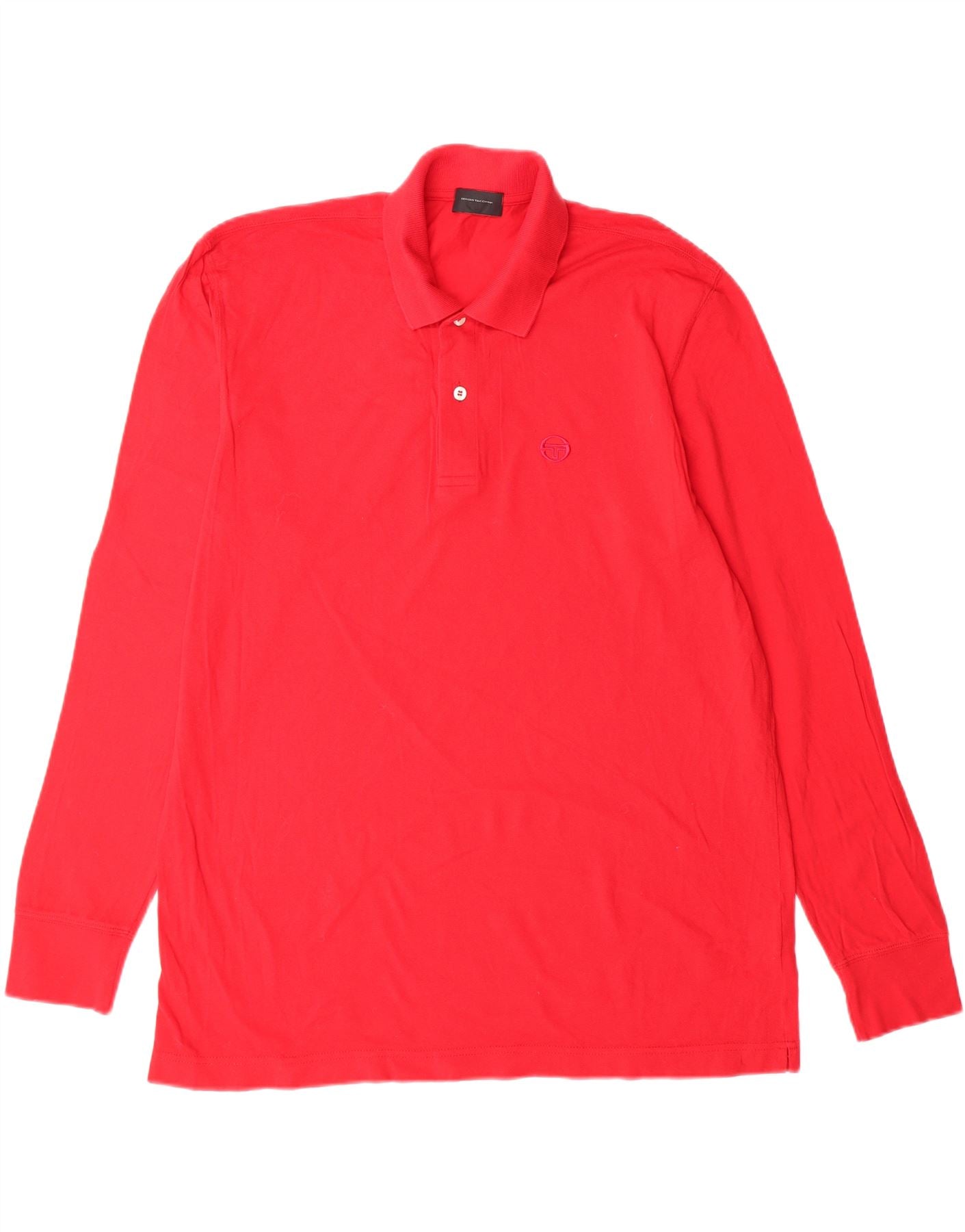 SERGIO TACCHINI Mens Long Sleeve Polo Shirt IT 52 Large Red Cotton