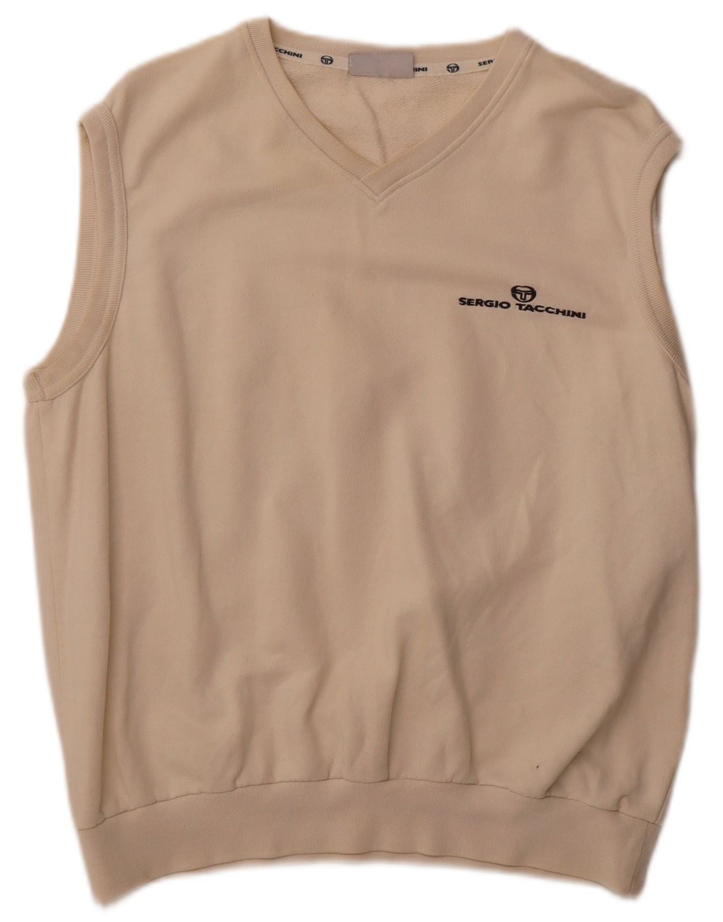 SERGIO TACCHINI Mens Sleeveless Sweatshirt Jumper XL Off White Cotton