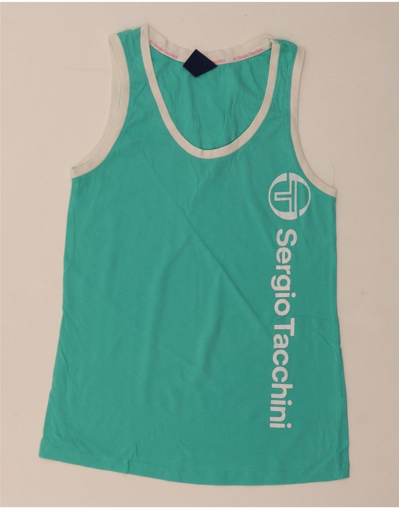 SERGIO TACCHINI Womens Graphic Vest Top US 4 Small Turquoise Cotton