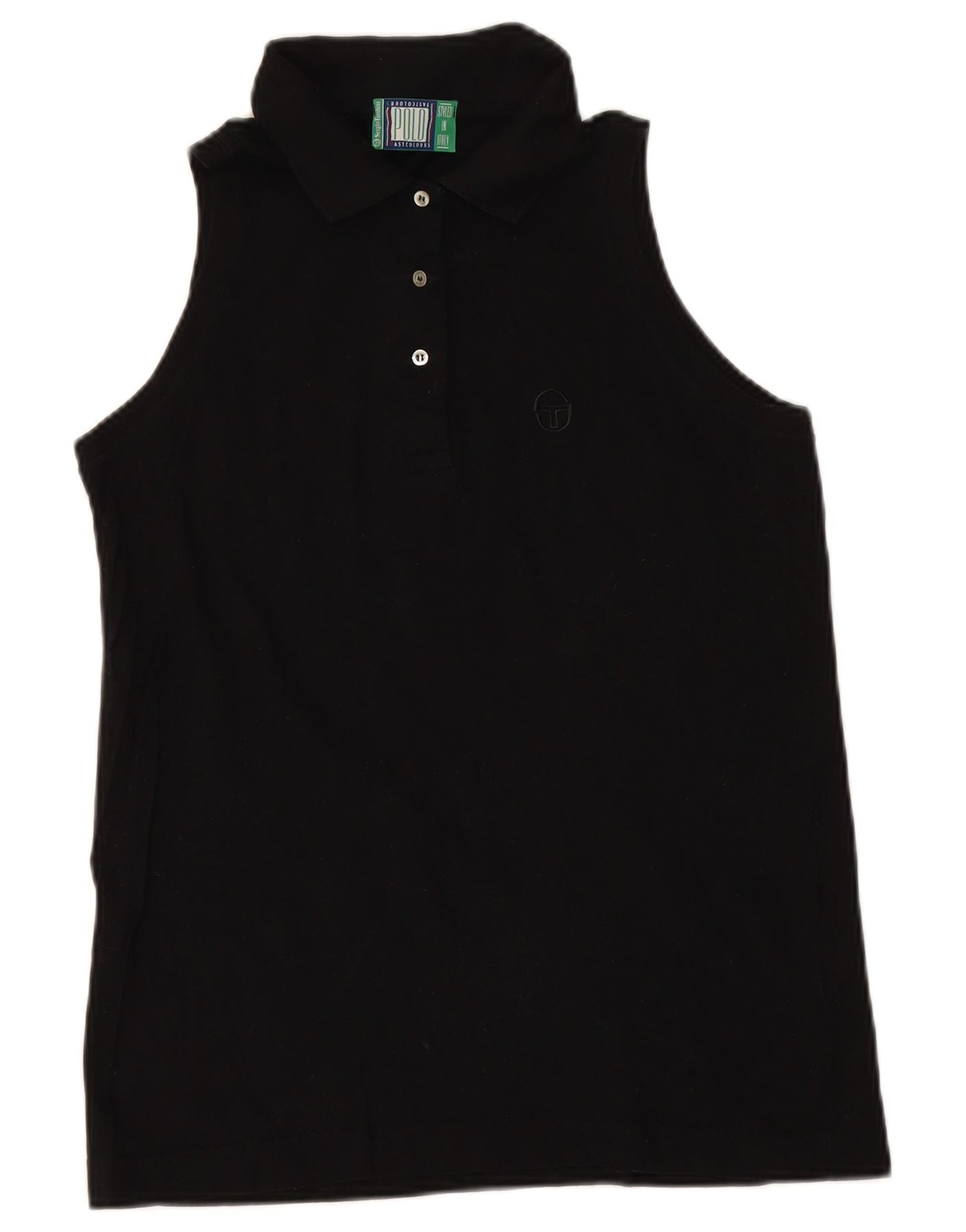 SERGIO TACCHINI Womens Sleeveless Polo Shirt UK 14 Large Black Cotton