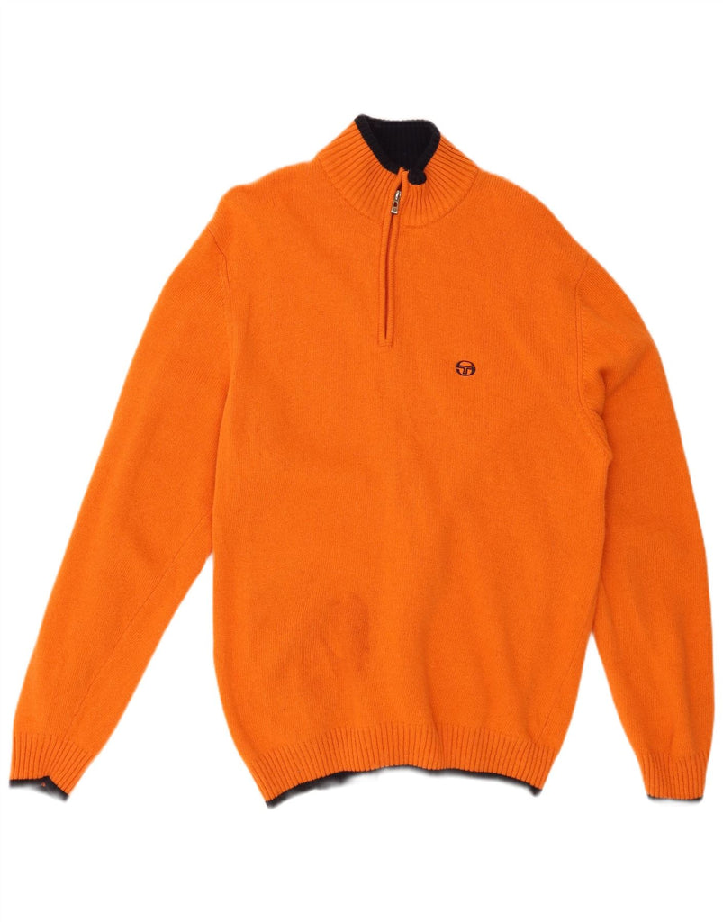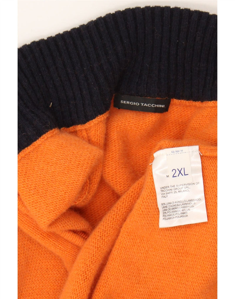 SERGIO TACCHINI Womens Zip Neck Jumper Sweater UK 20 2XL Orange Wool
