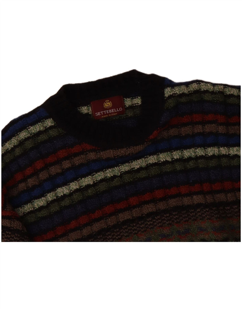 SETTEBELLO Mens Crew Neck Jumper Sweater Medium Multicoloured Striped