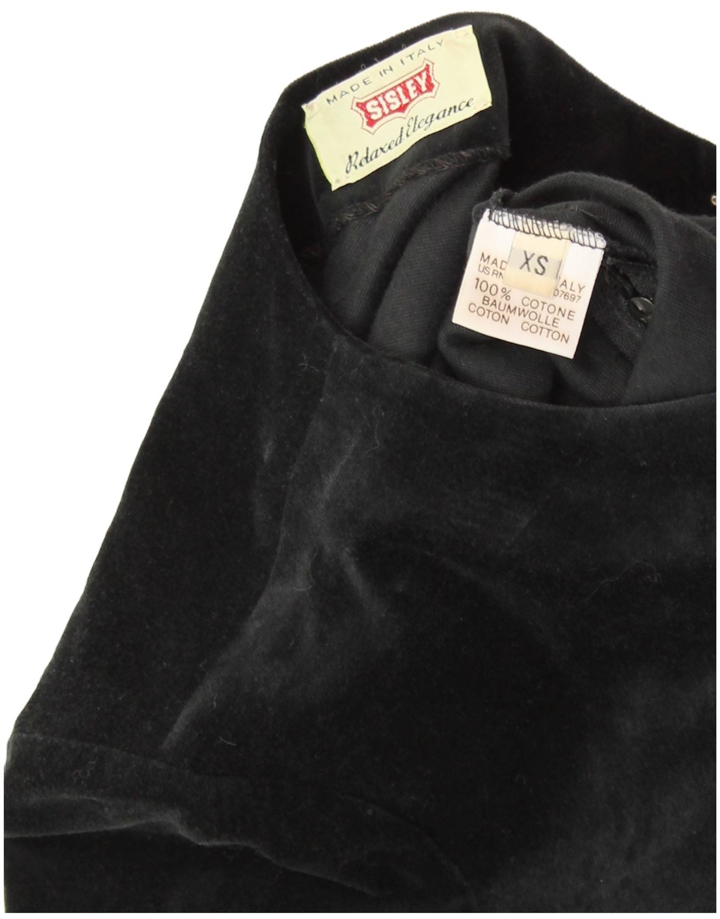 SISLEY Womens Velvet Sheath Dress UK 6 XS Black Cotton
