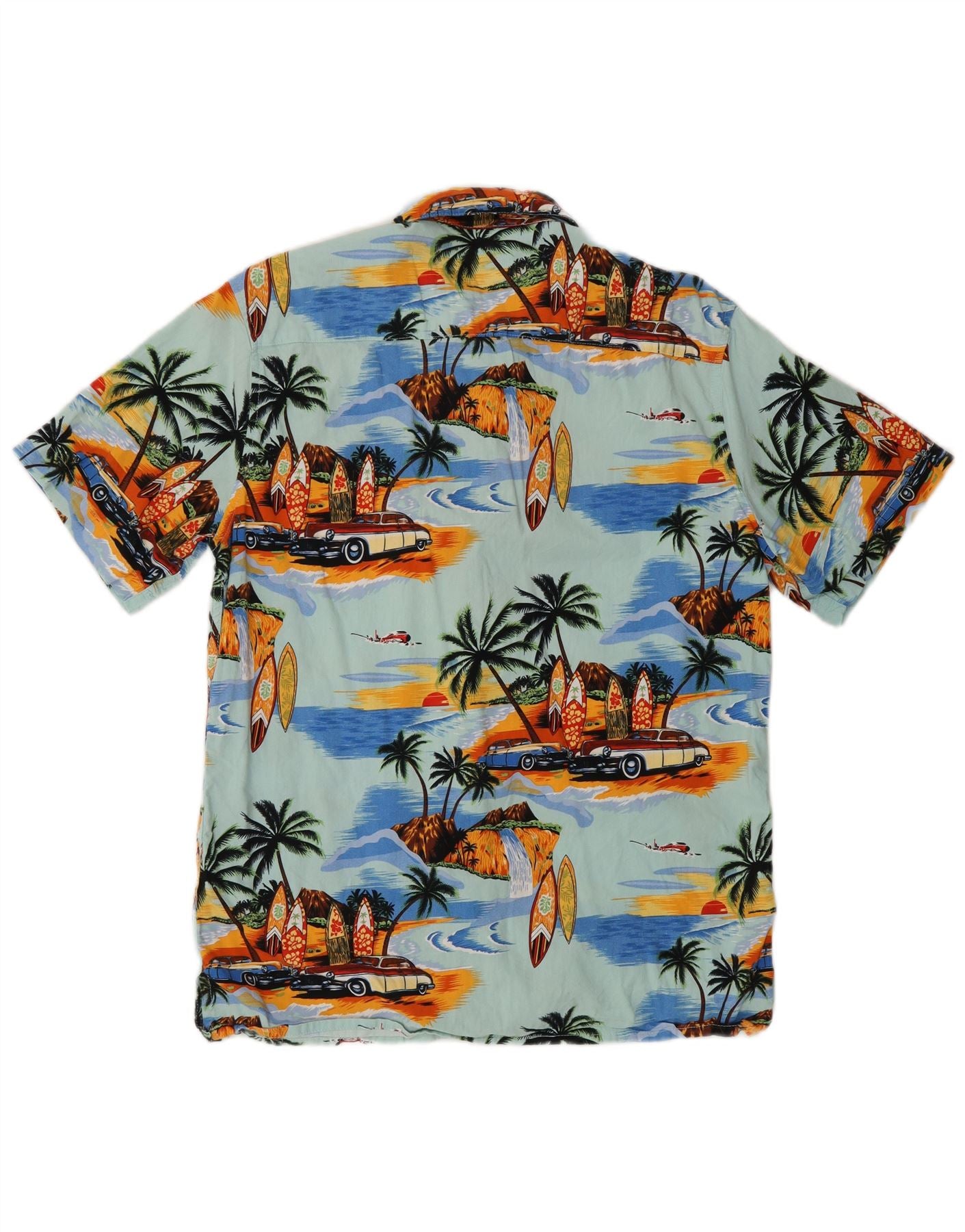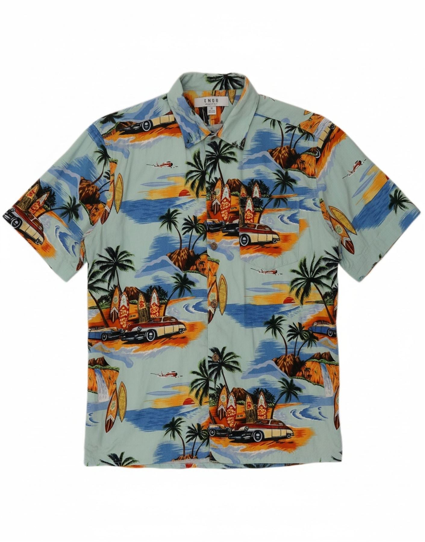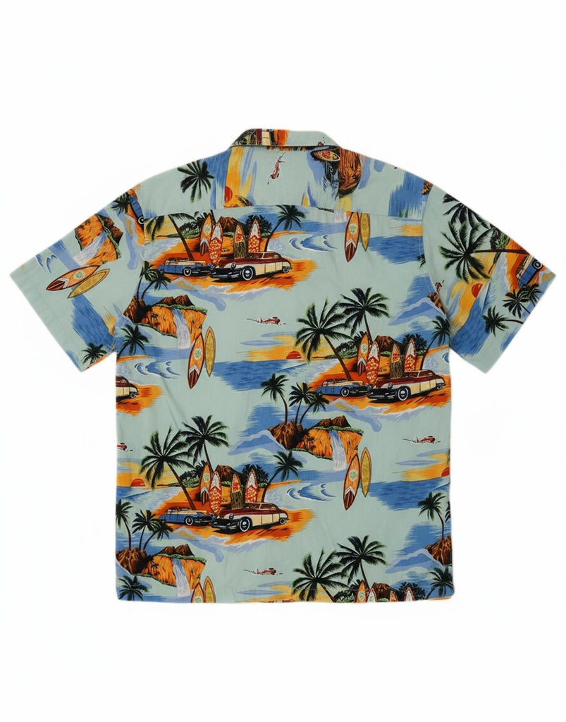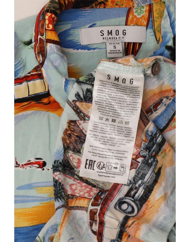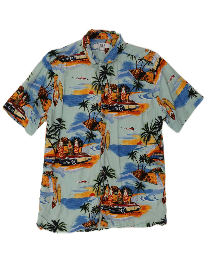 SMOG Mens Relaxed Fit Short Sleeve Shirt Small Turquoise Cotton Hawaiian