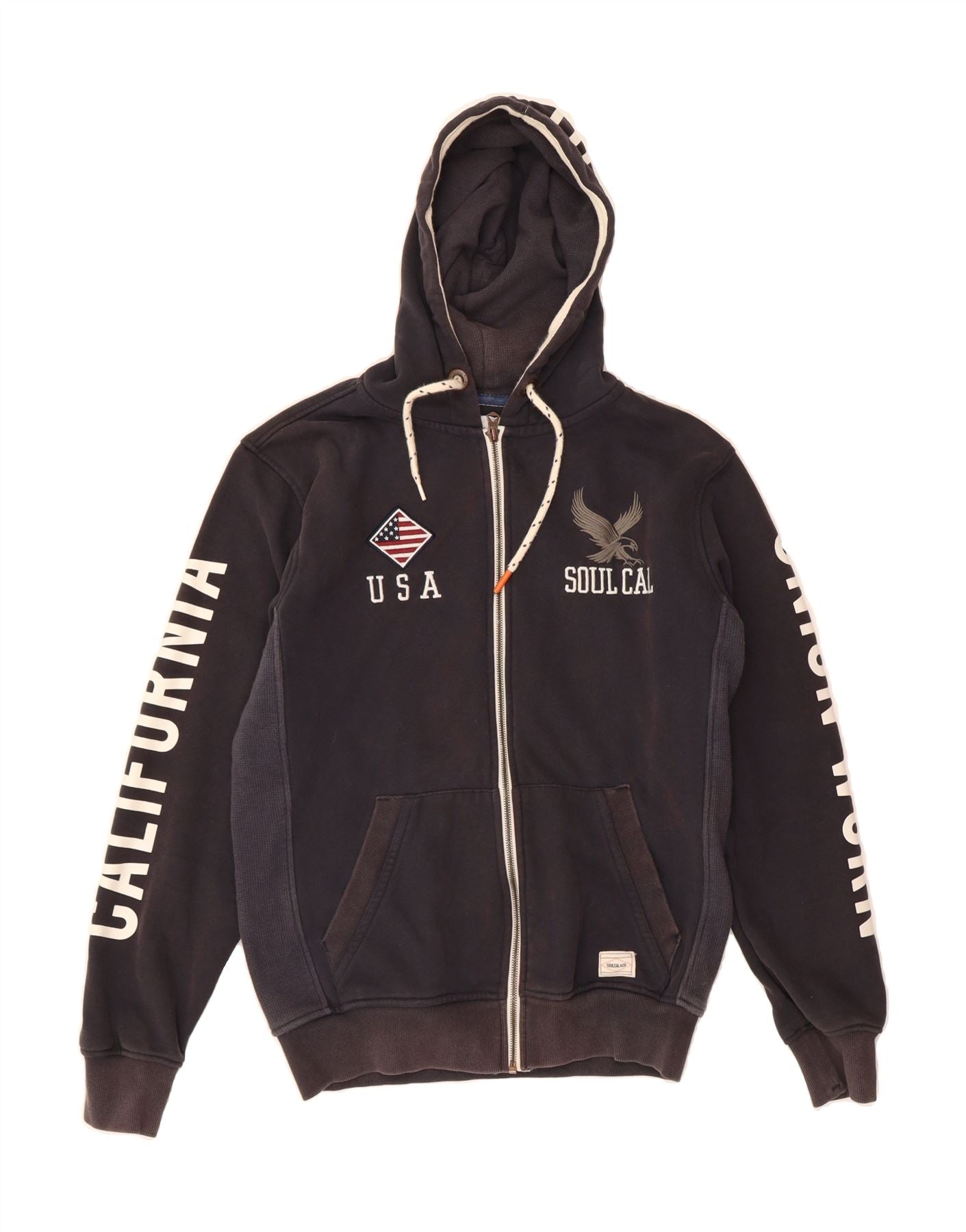 SOUL CAL Mens Graphic Zip Hoodie Sweater Medium Navy Blue Cotton