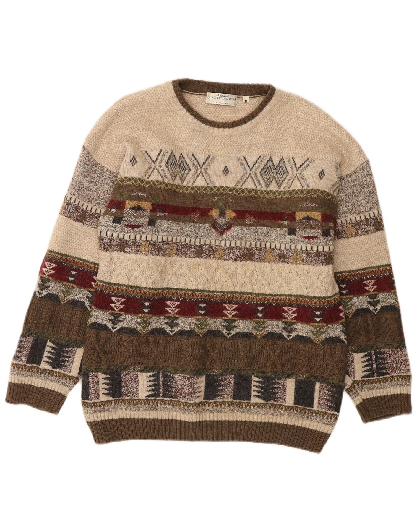 ST. BERNARD Mens Crew Neck Jumper Sweater Medium Green Geometric Acrylic