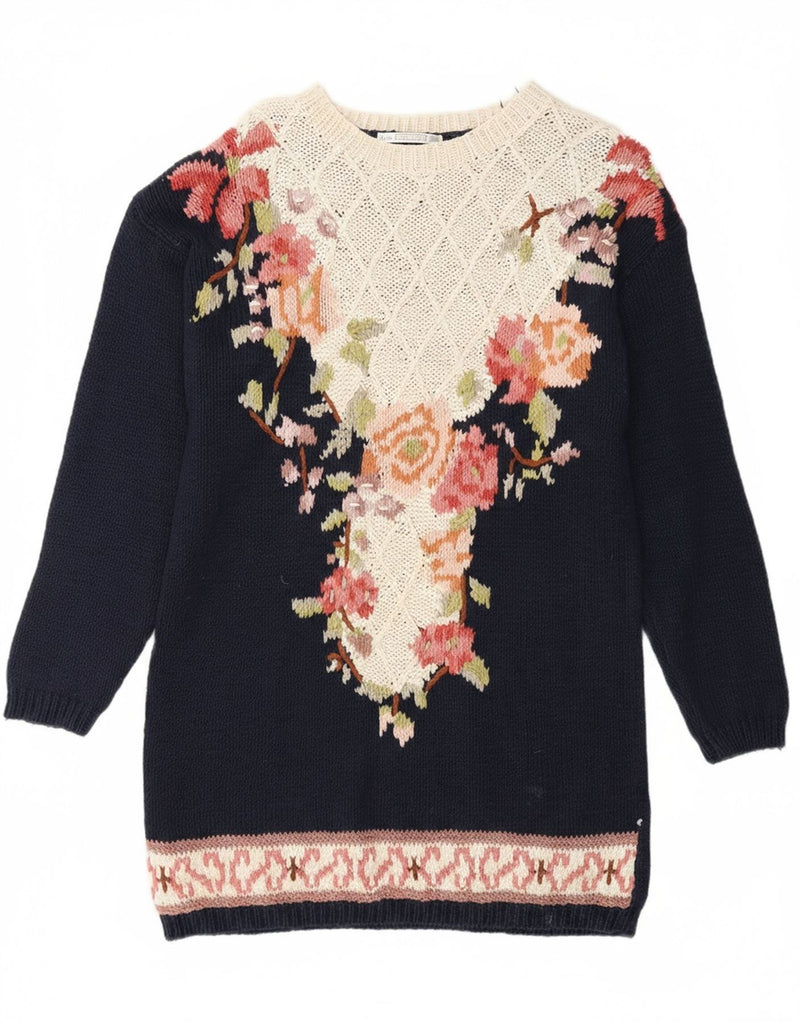 ST. BERNARD Womens Crew Neck Jumper Sweater UK 18/20 XL Navy Blue Floral