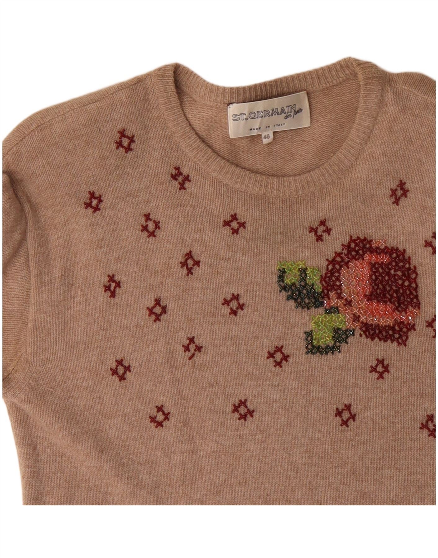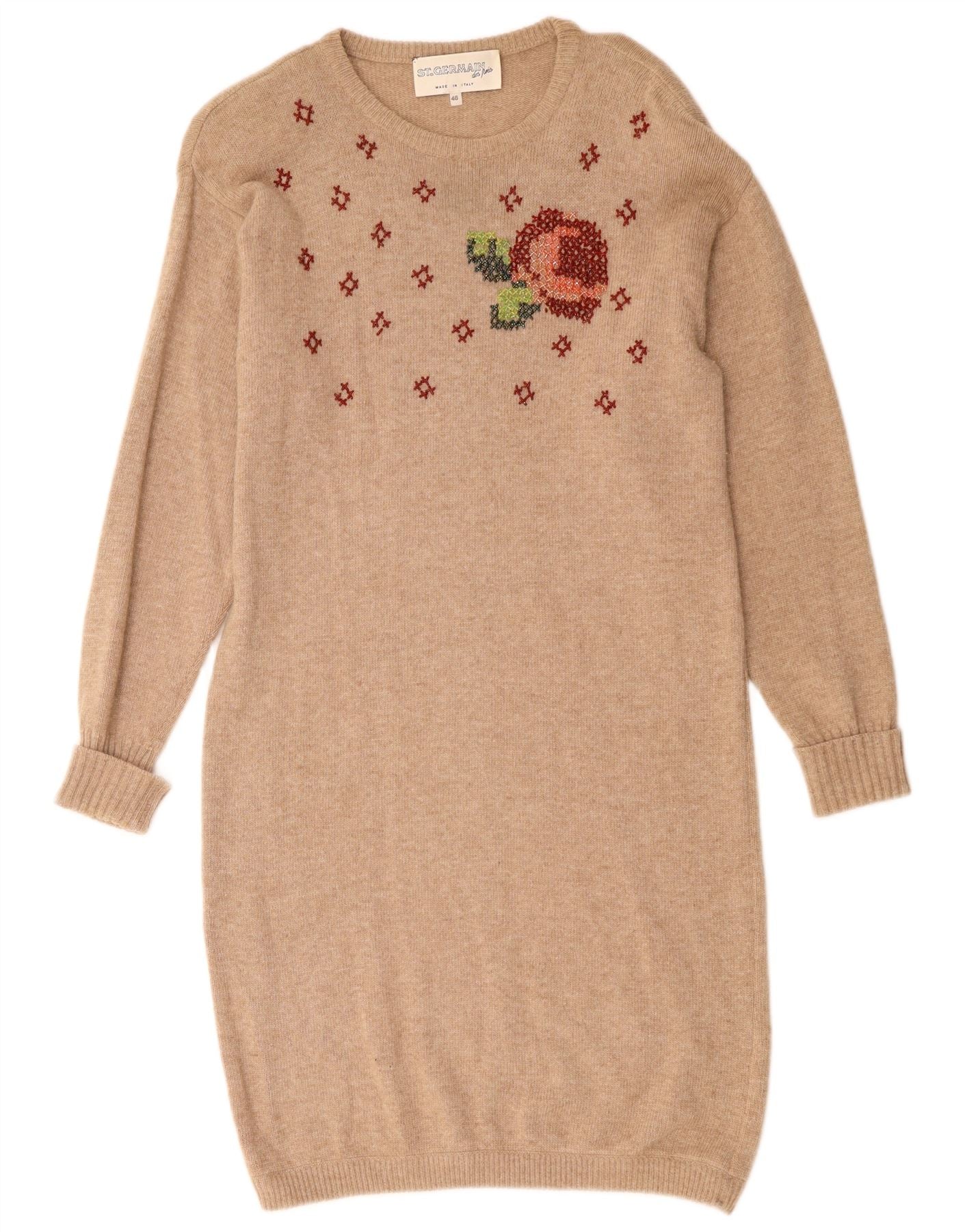 ST. GERMAIN Womens Long Sleeve Jumper Dress EU 46 XL Beige Angora