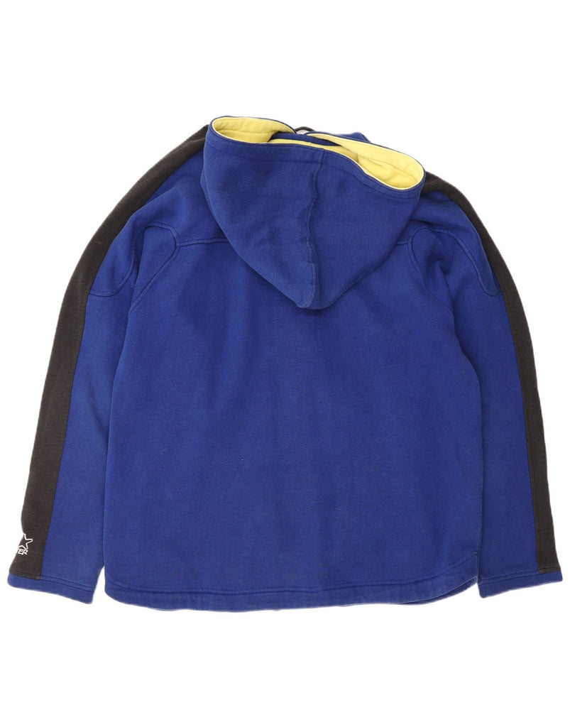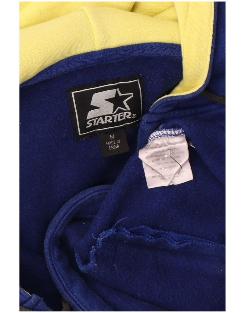 STARTER Mens Button Neck Hoodie Jumper Medium Blue Colourblock Cotton