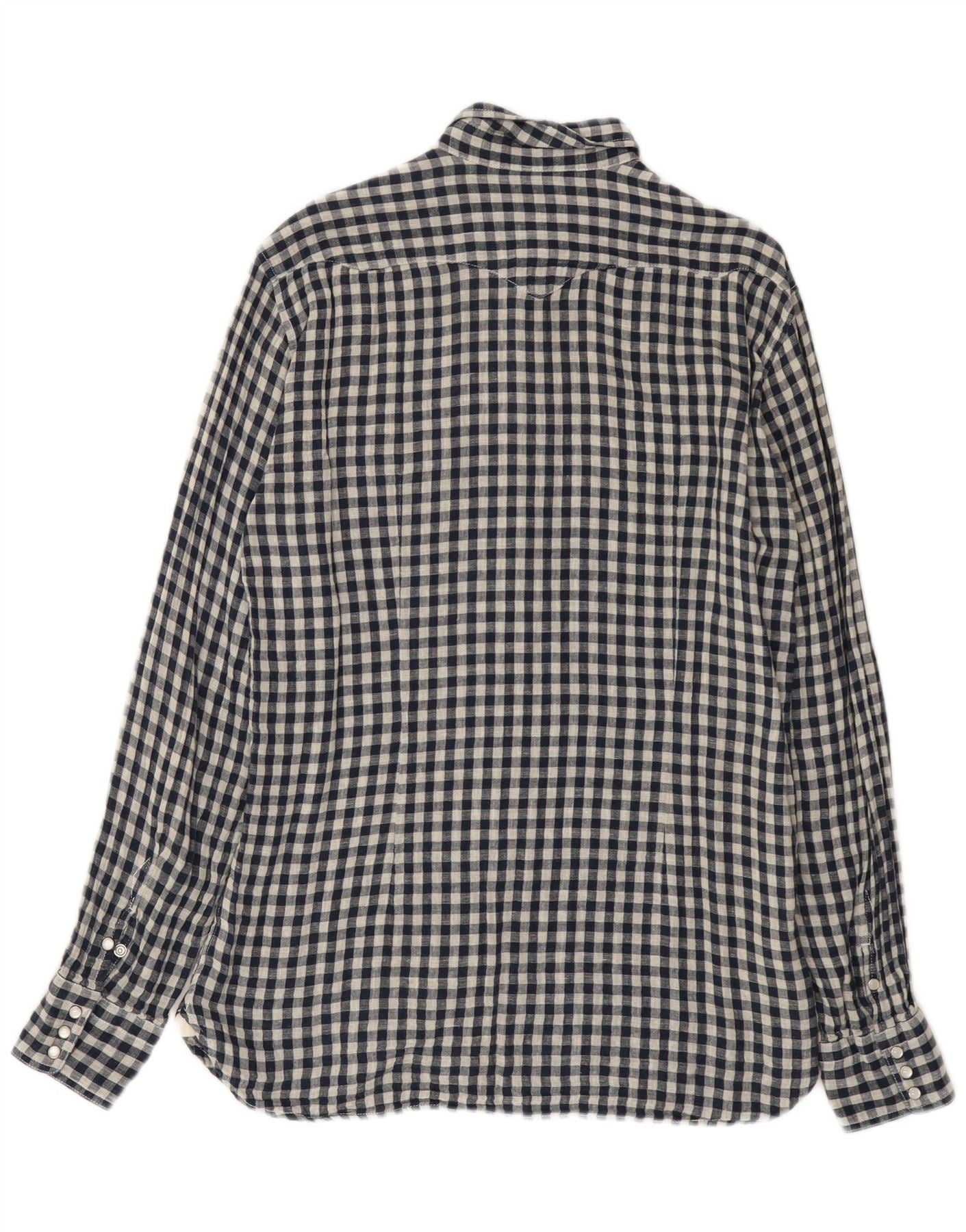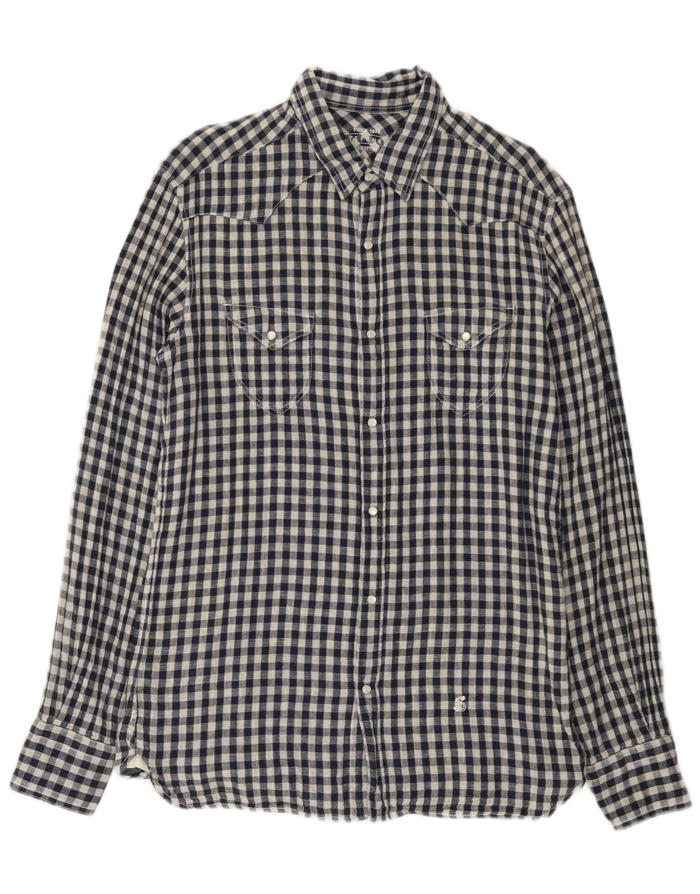 Stefanel Mens Western Shirt Large Navy Blue Gingham Cotton