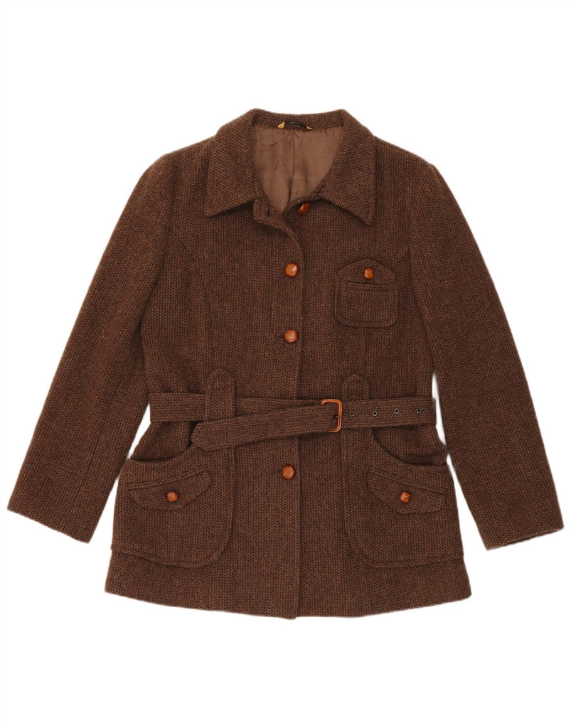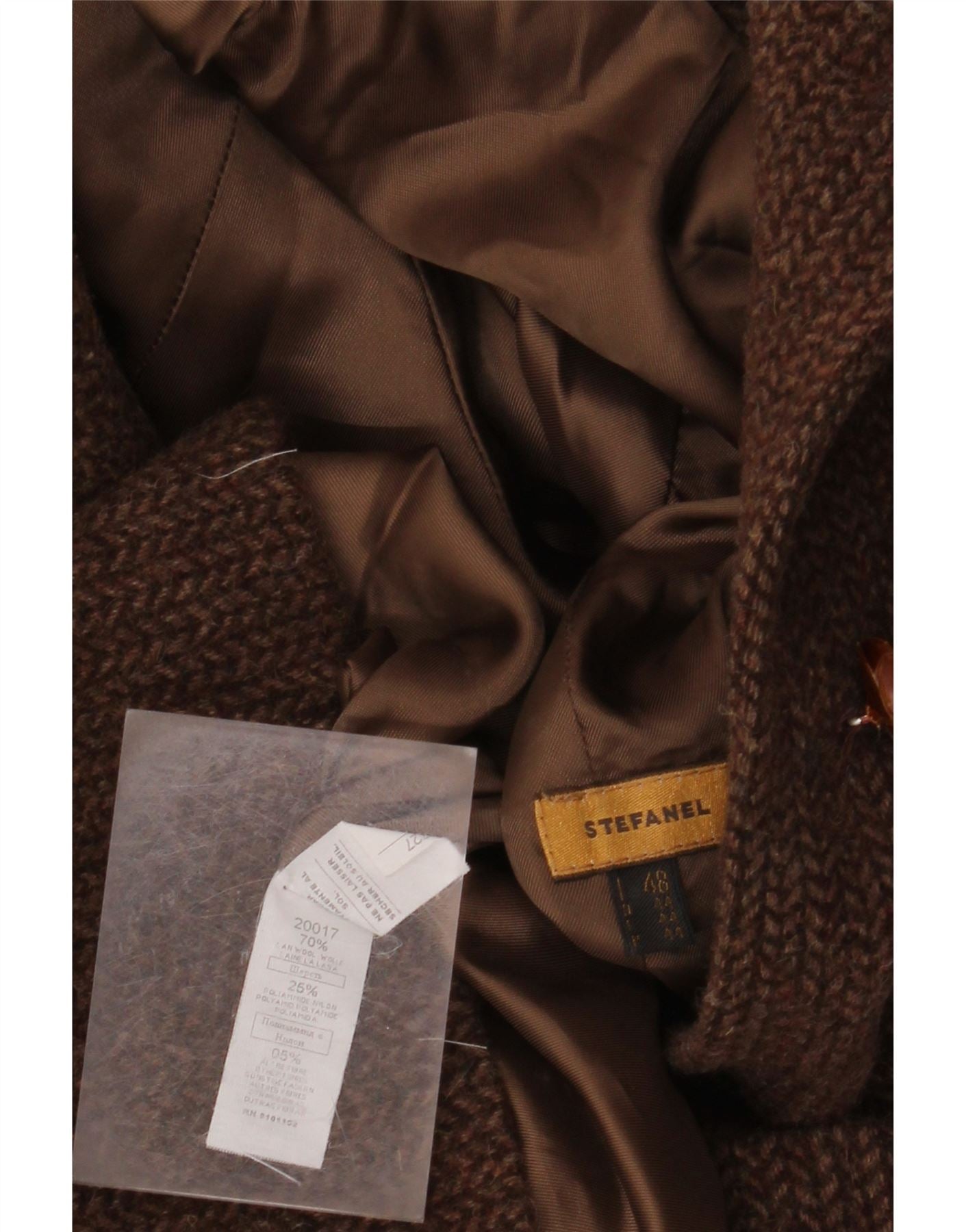STEFANEL Womens Overcoat IT 48 XL Brown Herringbone Lambswool