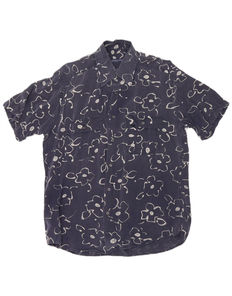 STEFANO CONTI Mens Shirt Size 15 1/2 39 Medium Navy Blue Floral