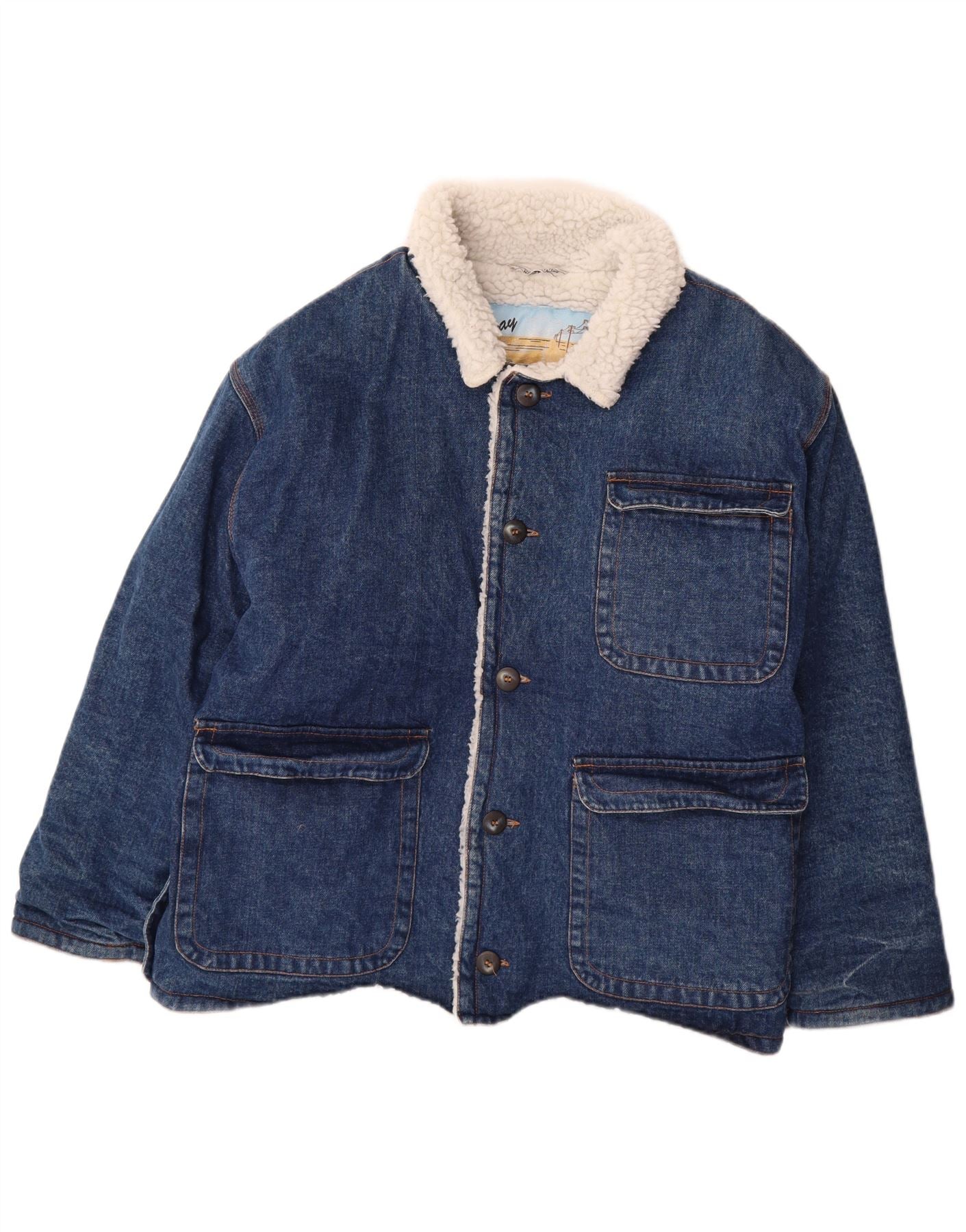 STRATOS Mens Denim Sherpa Jacket UK 42 XL Blue Cotton