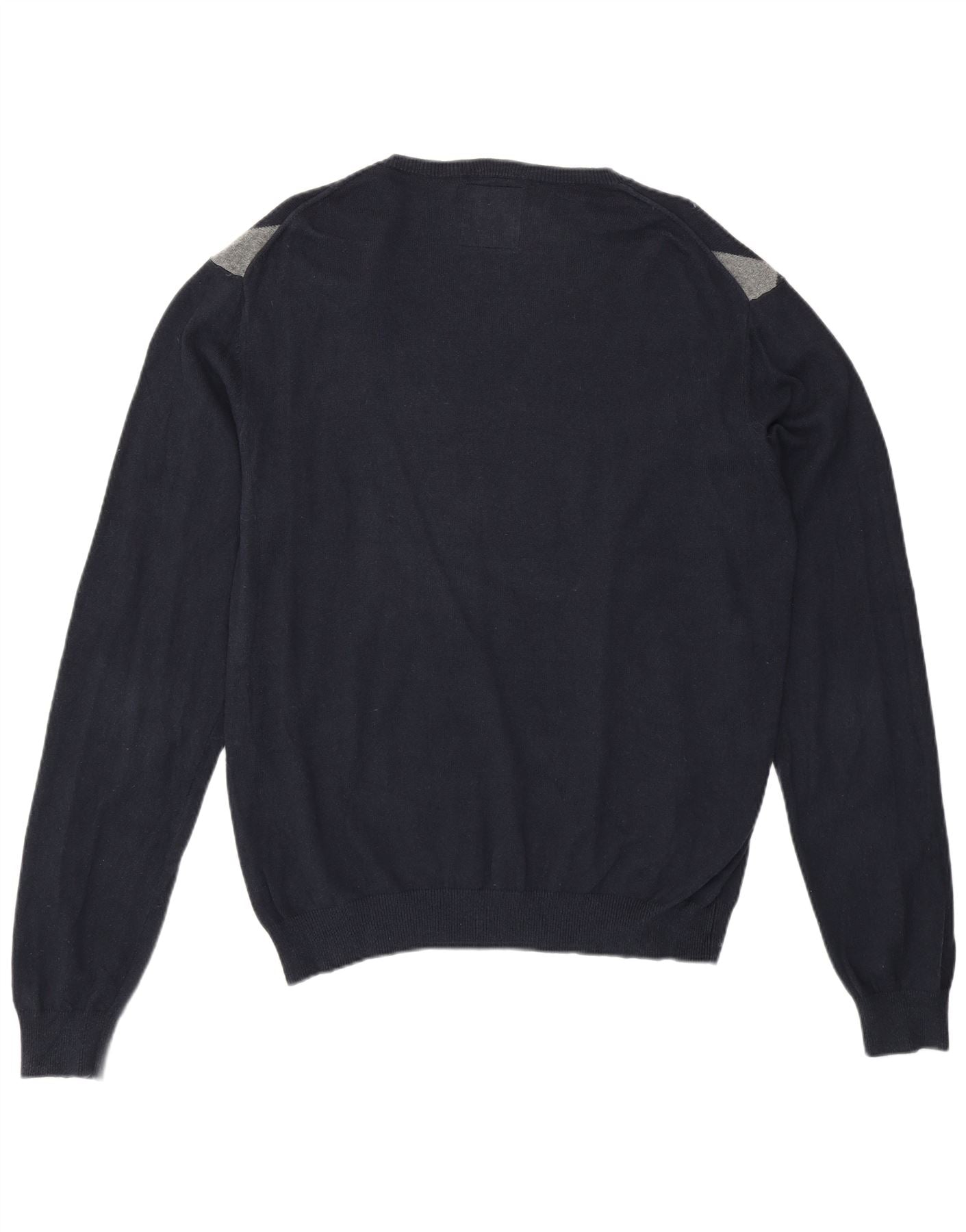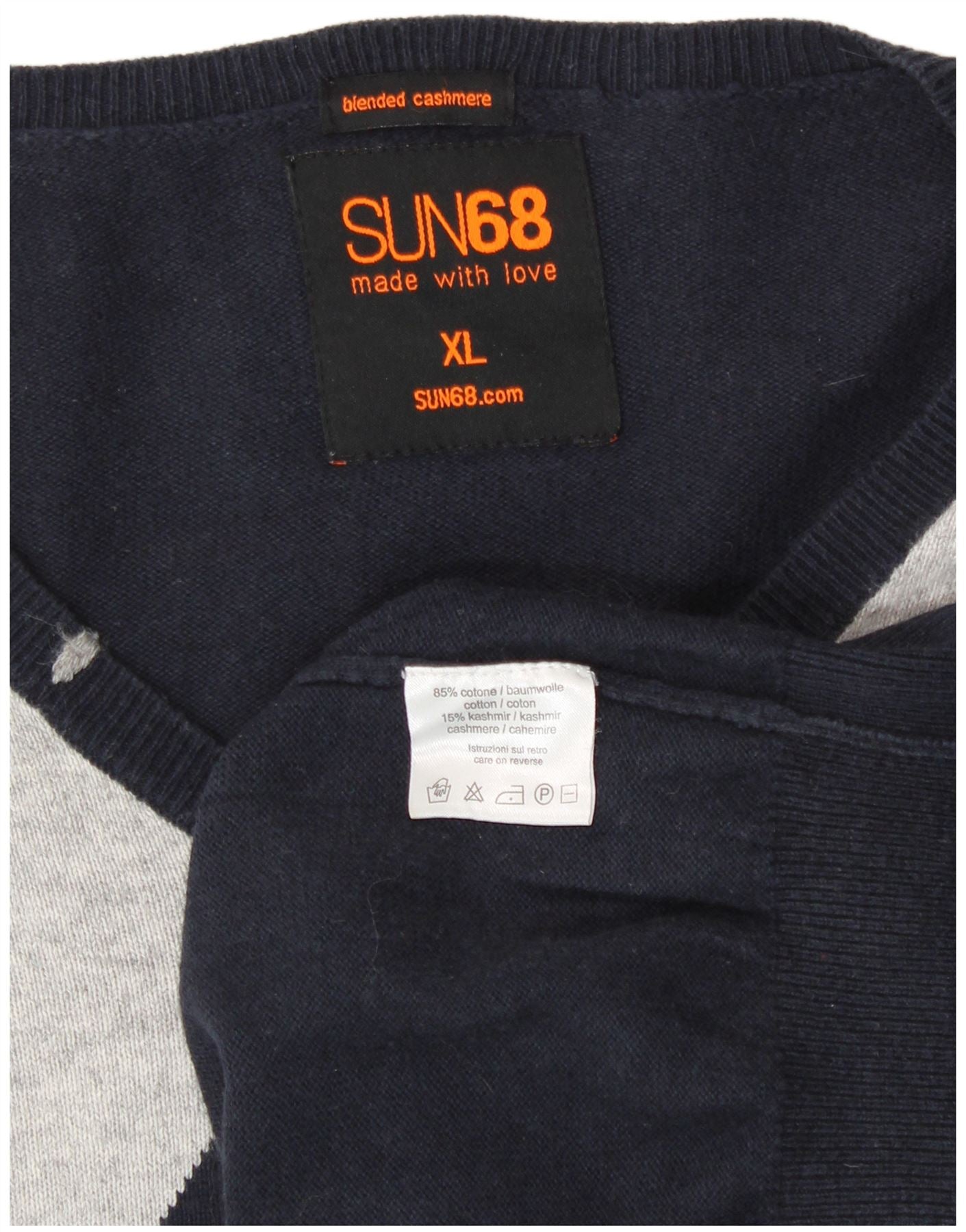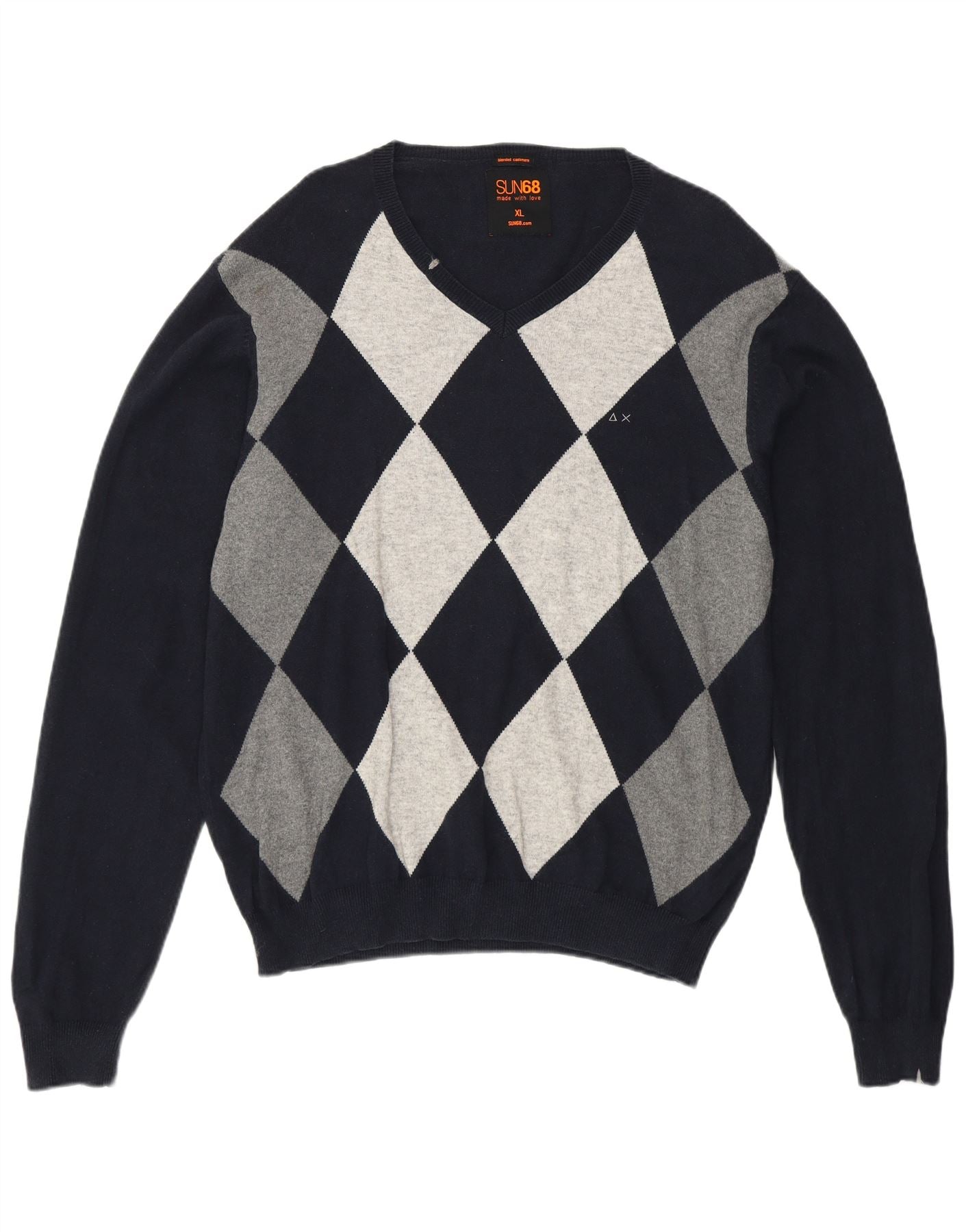 SUN68 Mens V-Neck Jumper Sweater XL Navy Blue Argyle/Diamond Cotton