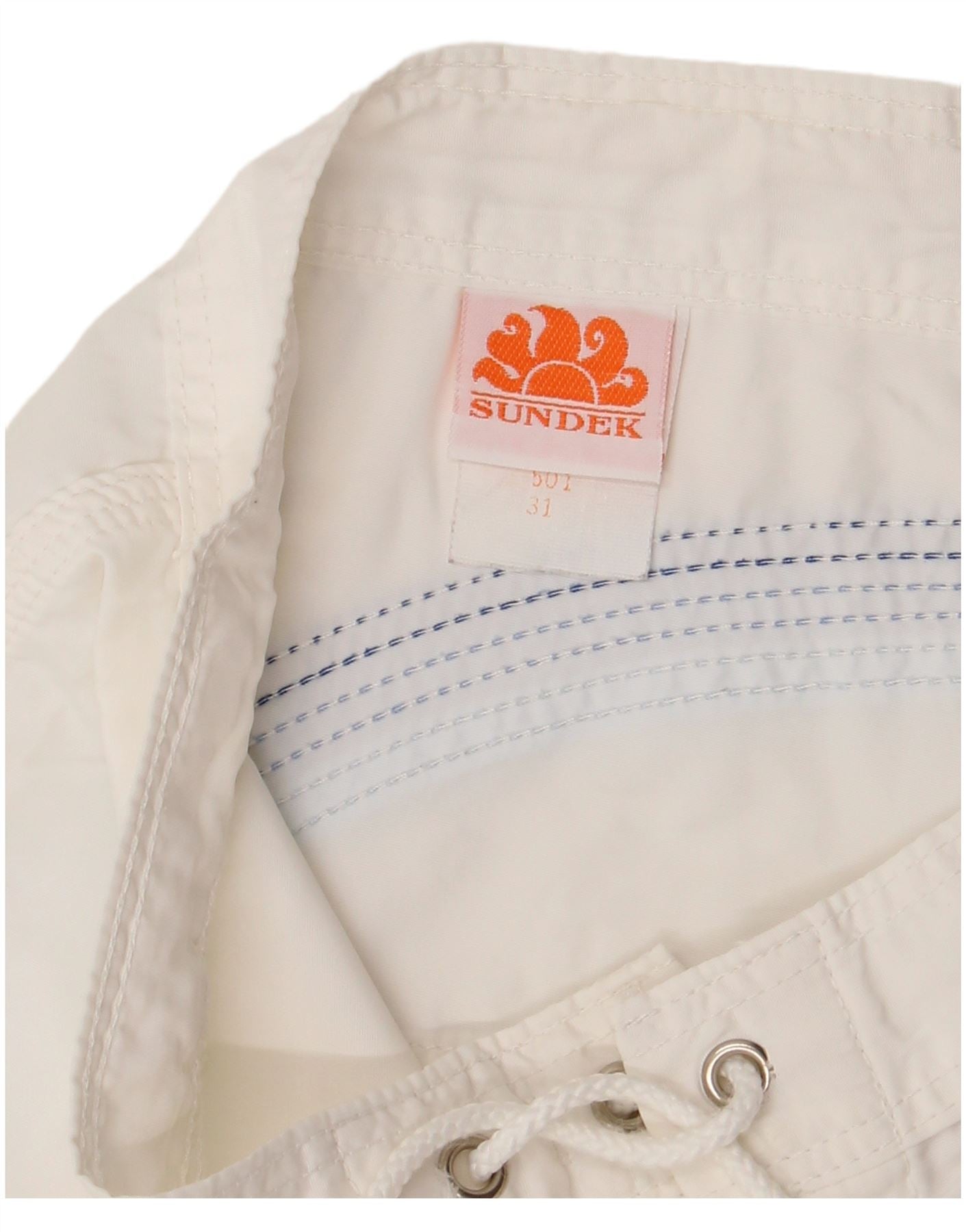 SUNDEK Mens Swimming Shorts Medium White Striped Nylon