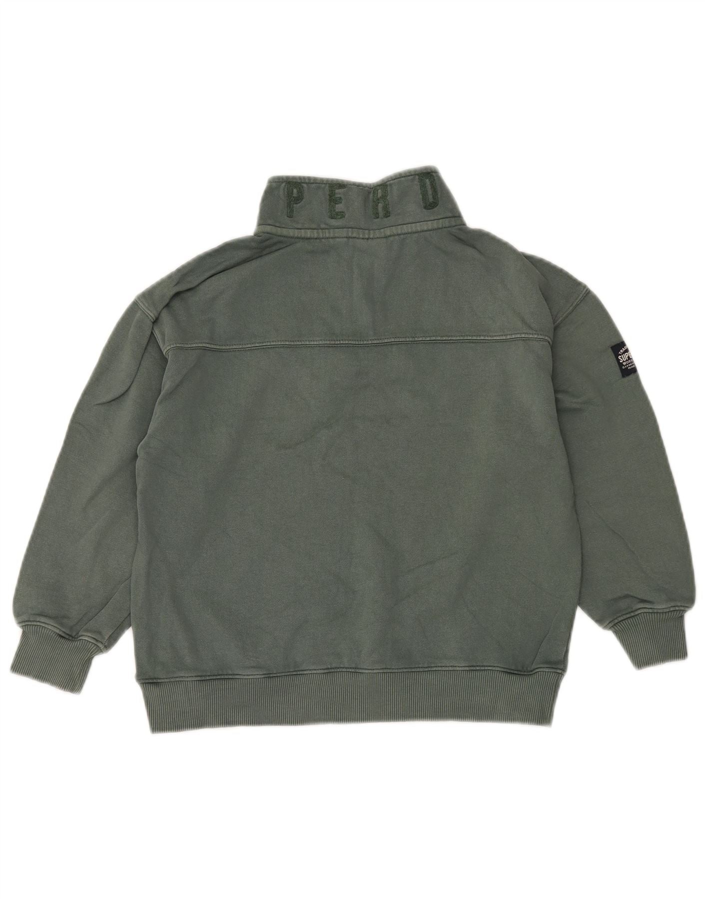 SUPERDRY Boys Graphic Zip Neck Sweatshirt Jumper 7-8 Years Green Cotton