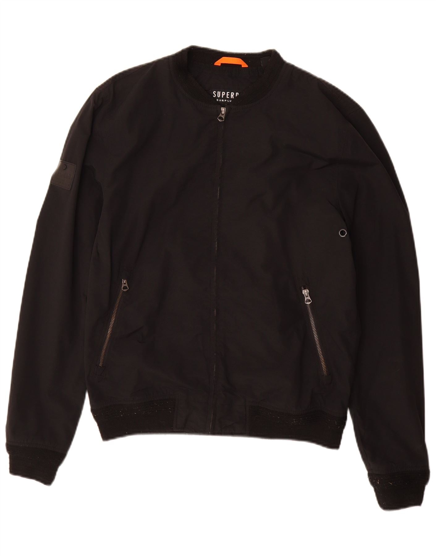 SUPERDRY Mens Bomber Jacket UK 38 Medium Black Cotton