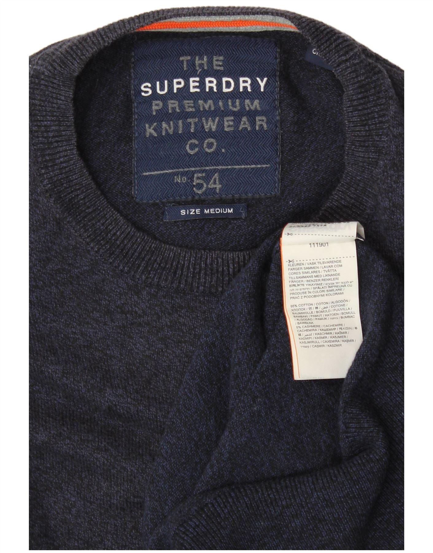 SUPERDRY Mens Crew Neck Jumper Sweater Medium Navy Blue Cotton