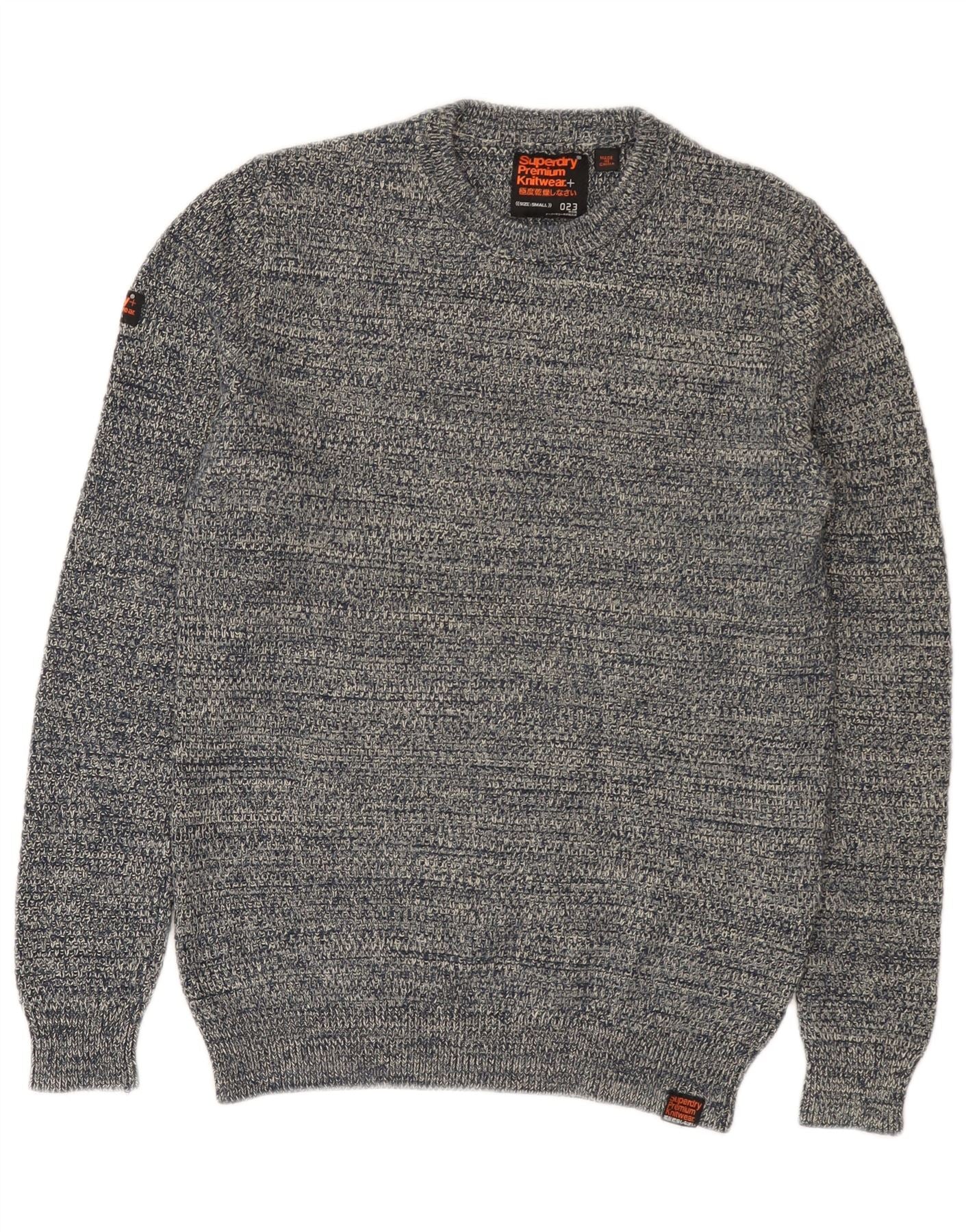 SUPERDRY Mens Crew Neck Jumper Sweater Small Navy Blue Flecked Cotton