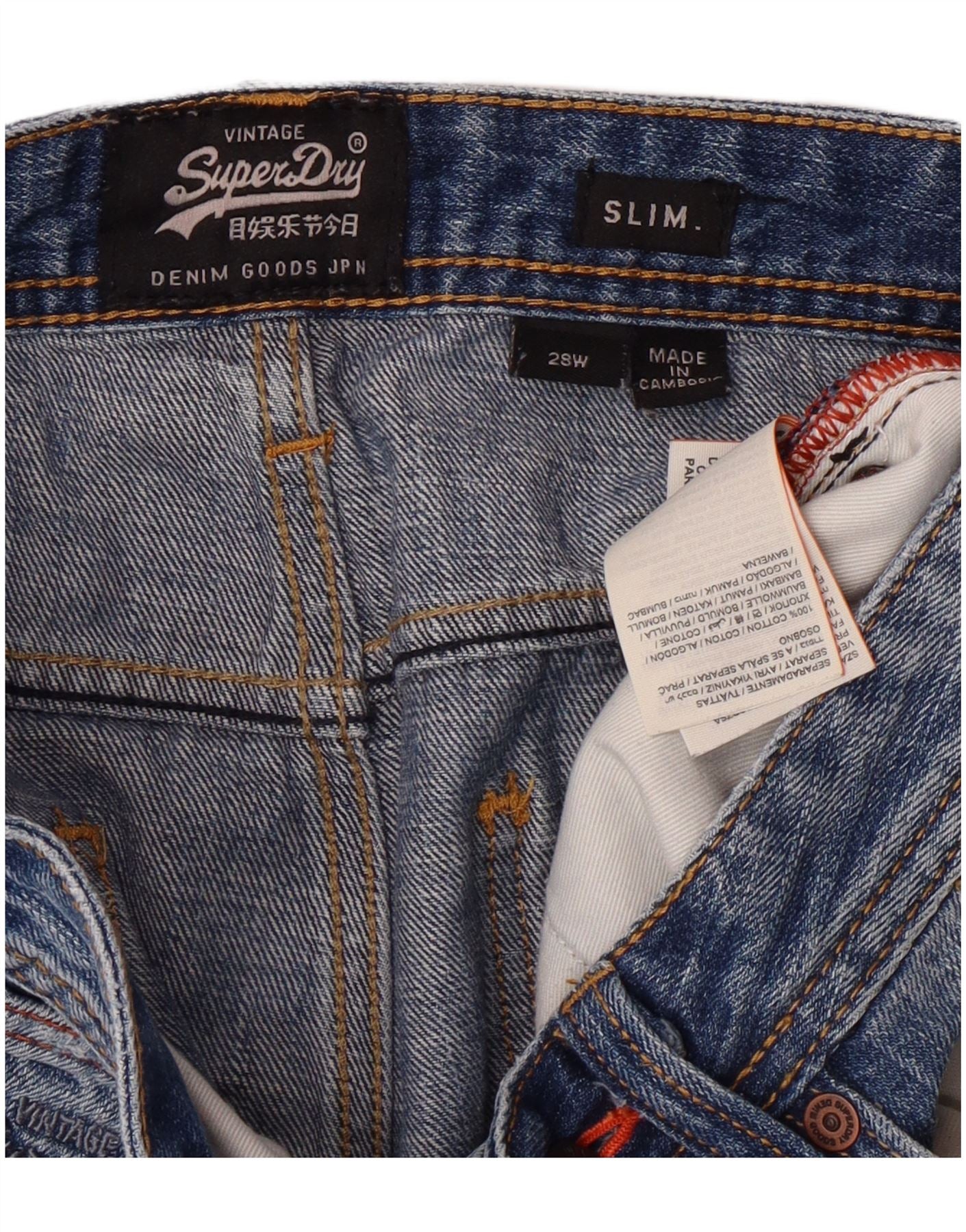 SUPERDRY Mens Distressed Slim Denim Shorts W28 Medium Blue Cotton
