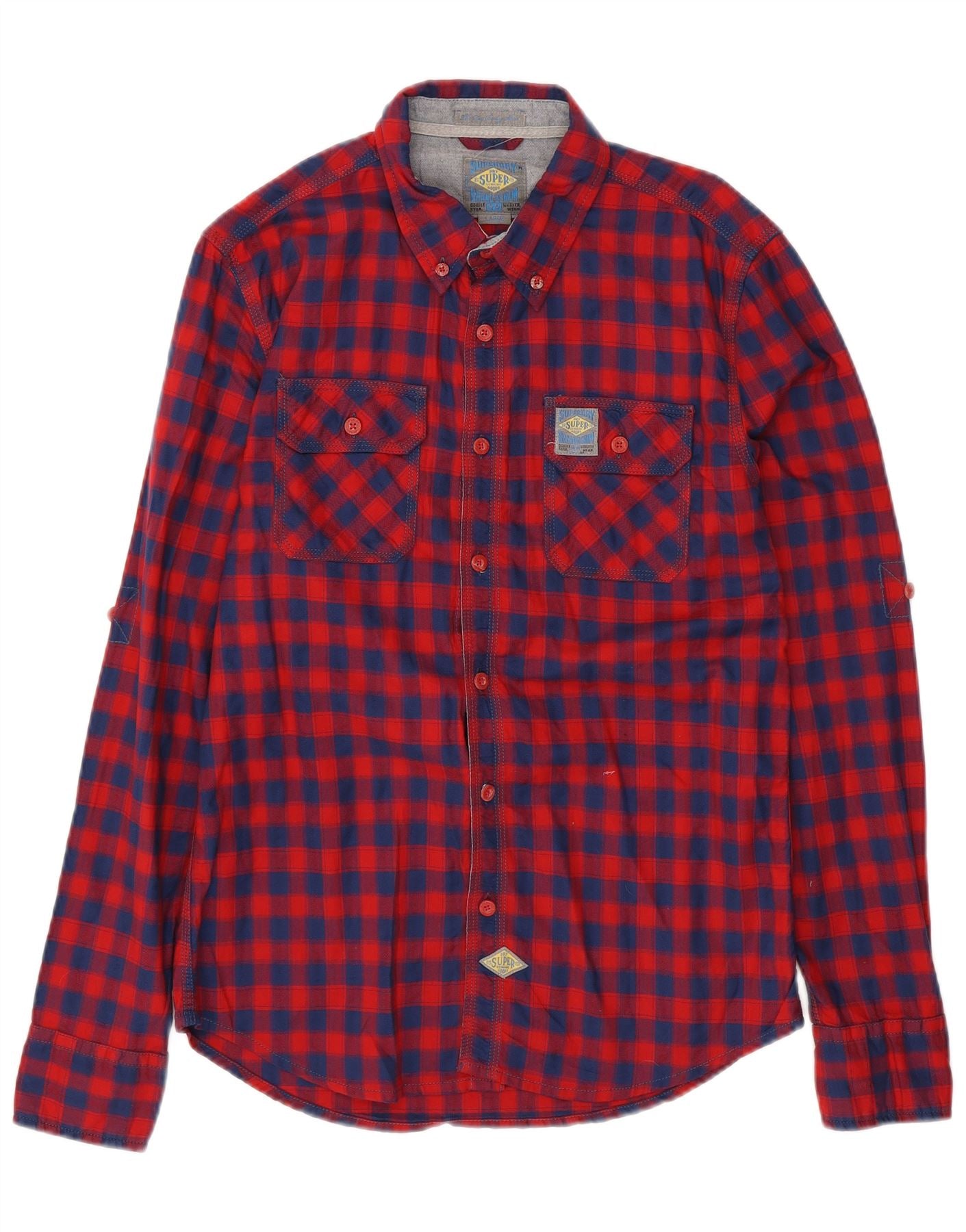 SUPERDRY Mens Flannel Shirt Large Red Check Cotton