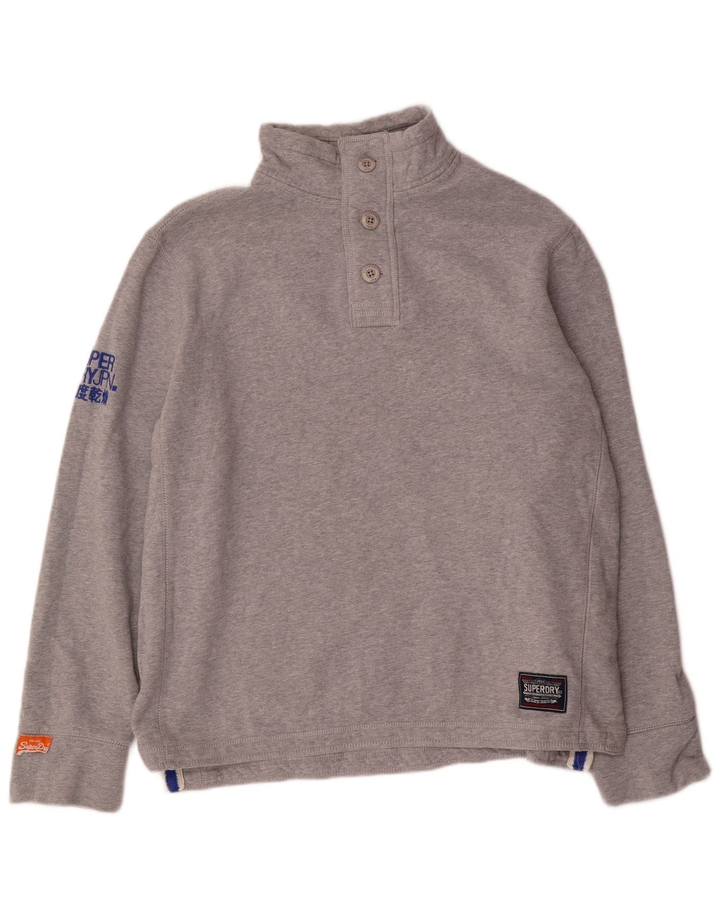 SUPERDRY Mens Graphic Button Neck Sweatshirt Jumper 2XL Grey Flecked