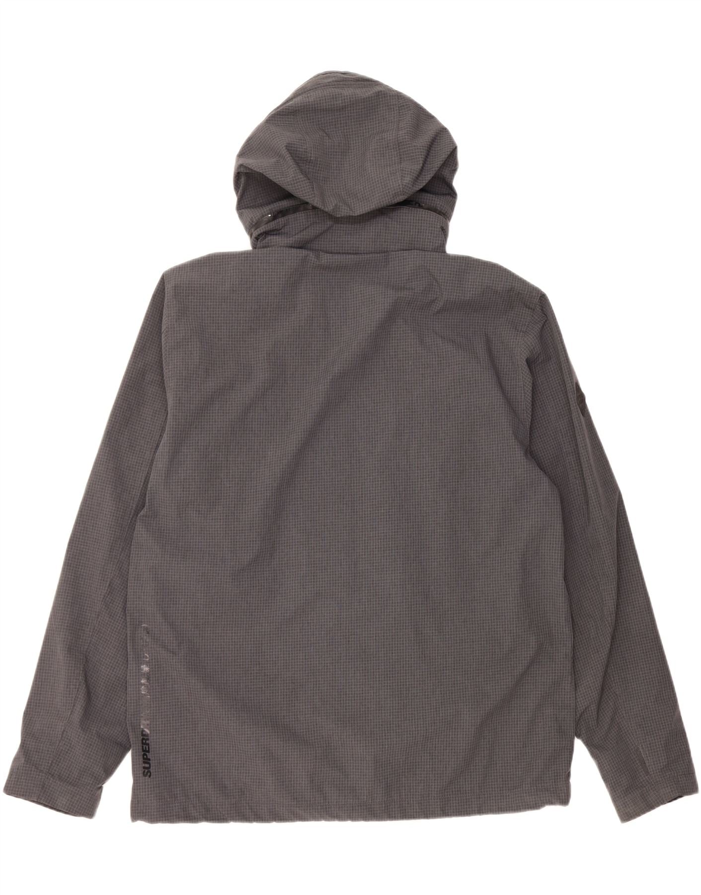 Superdry Mens Graphic Hooded Rain Jacket UK 46 3XL Grey Check Polyester