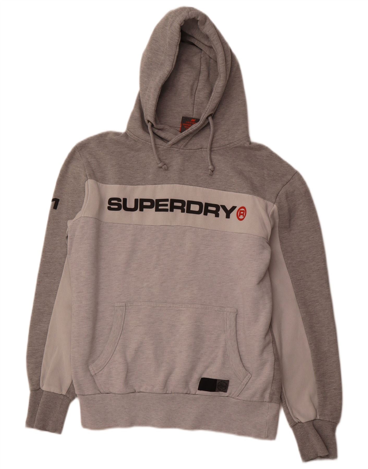 SUPERDRY Mens Graphic Hoodie Jumper XL Grey Colourblock Cotton