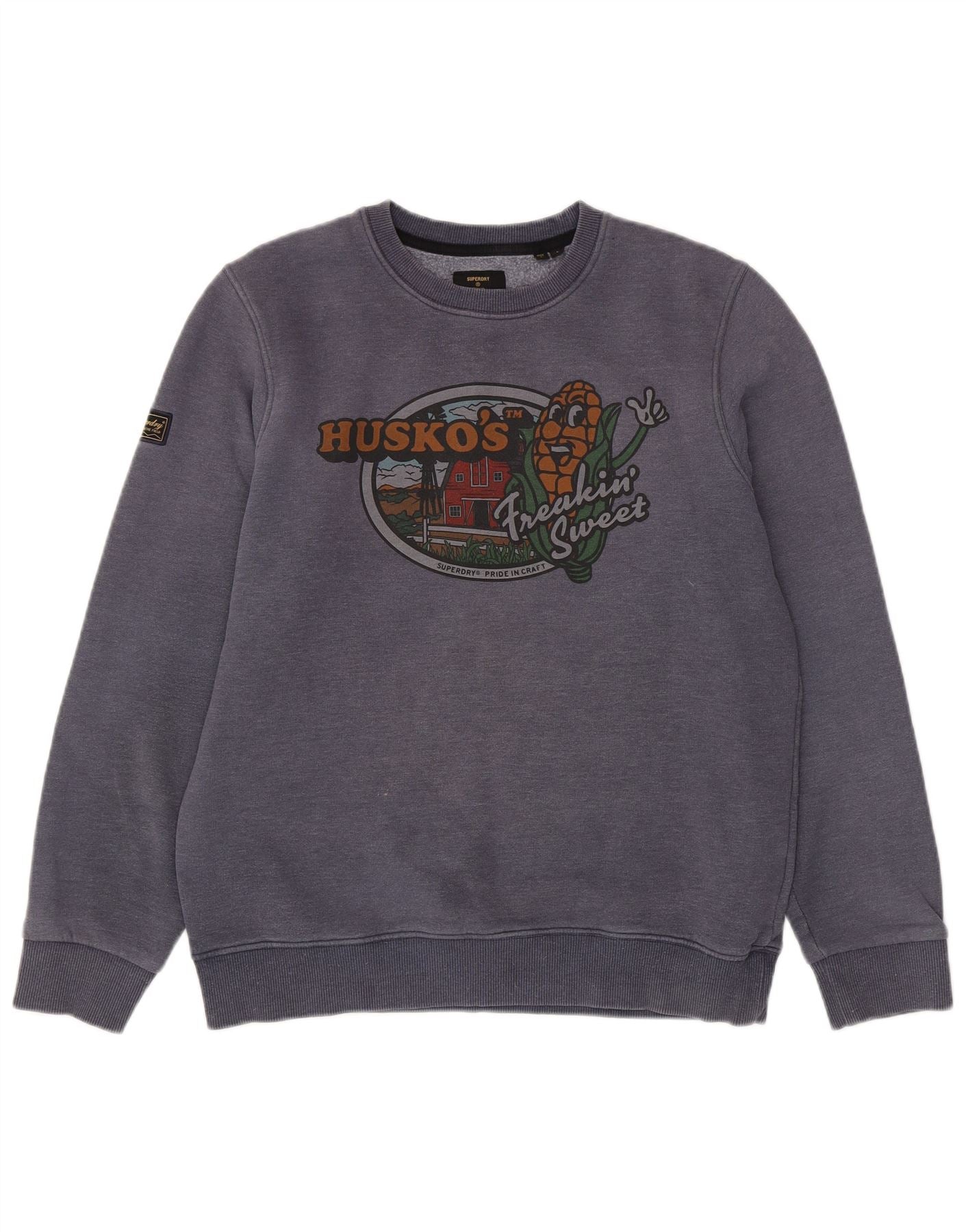 SUPERDRY Mens Graphic Sweatshirt Jumper Large Navy Blue Cotton