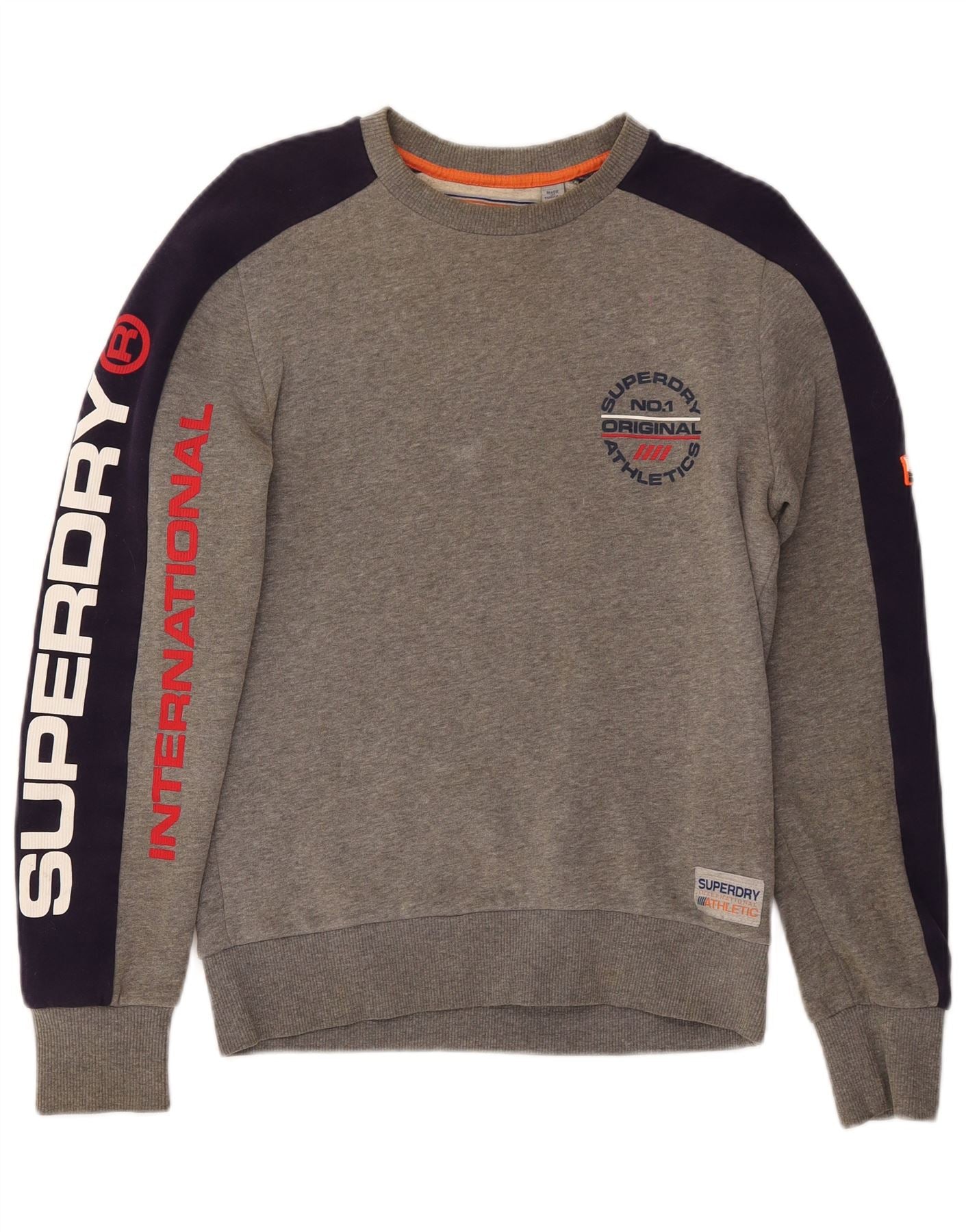 SUPERDRY Mens Graphic Sweatshirt Jumper Small Grey Colourblock Cotton