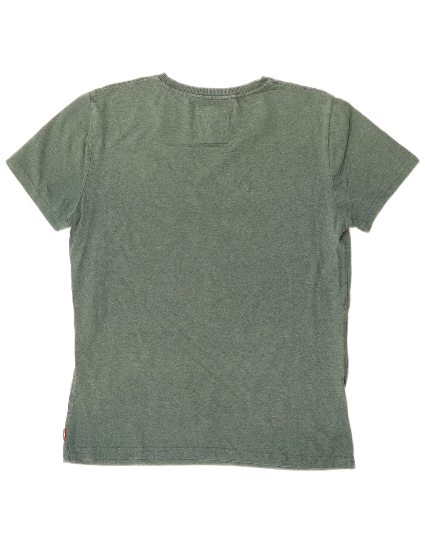 - AI Description: This Superdry mens graphic T-shirt is crafted from soft green jersey. It features a classic round neck and short sleeves. A prominent retro-style logo print adorns the front. This graphic adds a distinctive vintage touch. The regular fit ensures comfortable, everyday wear. It offers a casual yet stylish look.