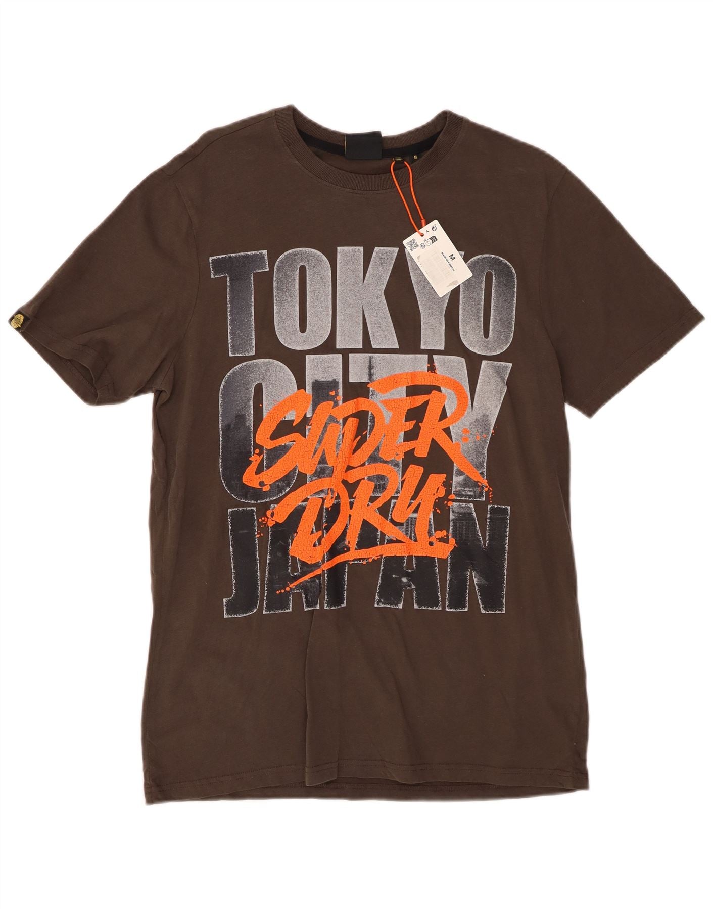 SUPERDRY Mens Graphic T-Shirt Top Medium Grey Cotton