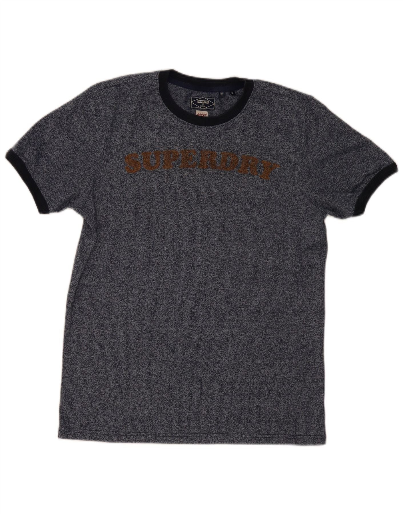 SUPERDRY Mens Graphic T-Shirt Top Medium Navy Blue Flecked Cotton