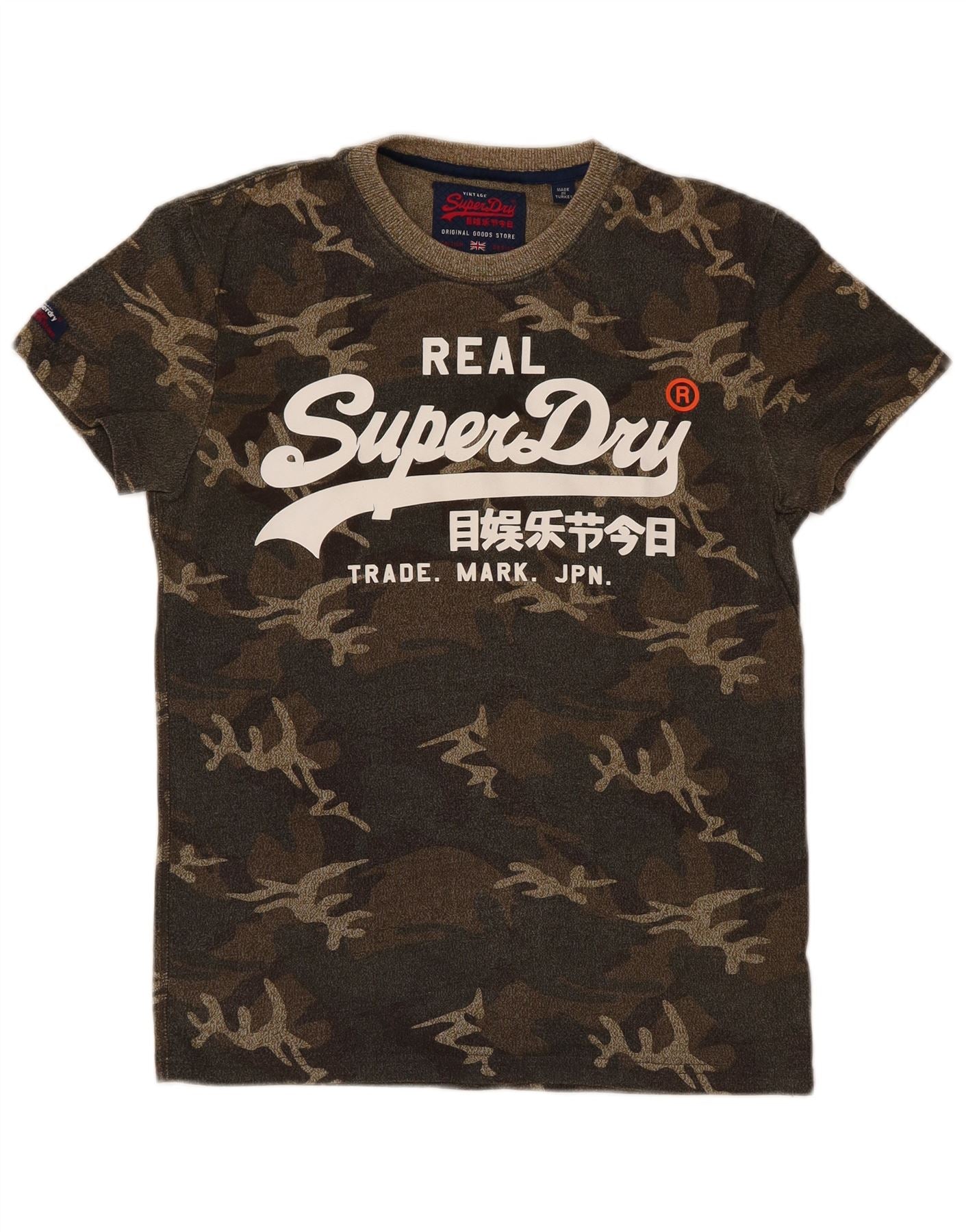 Superdry Mens Graphic T-Shirt Top Small Green Camouflage Cotton