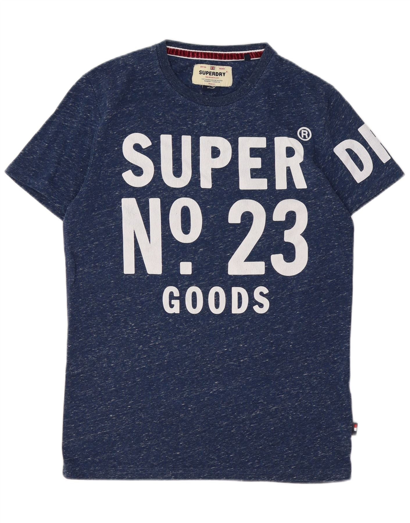 SUPERDRY Mens Graphic T-Shirt Top Small Navy Blue Flecked Cotton