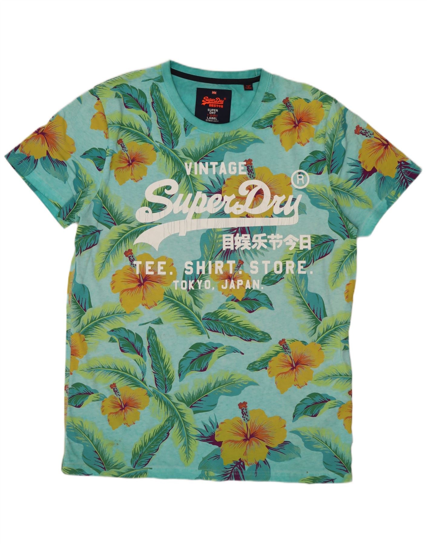 SUPERDRY Mens Graphic T-Shirt Top XL Blue Floral Cotton