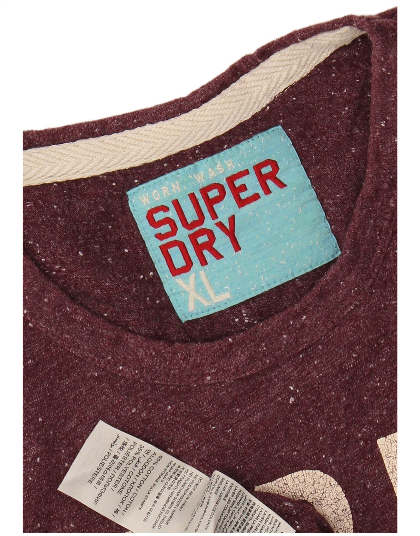 SUPERDRY Mens Graphic T-Shirt Top XL Burgundy Flecked Cotton