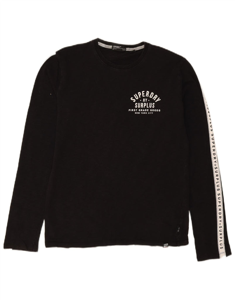 SUPERDRY Mens Graphic Top Long Sleeve Medium Black Colourblock Cotton